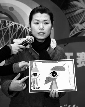 这个作品的主题是环保,宣传绿色奥运,眼睛中间是个什么字?像“污”又像“活”,污染就是来自生活中的,不是吗?