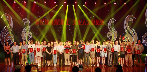 美术、书法、摄影、民间艺术、理论、文学类项目金奖 音乐、舞蹈、戏剧、曲艺、音乐创作、戏剧曲艺创作类项目金奖 集体奖 8月21日,浙江省文化馆业务干部才艺大赛颁奖晚会在萧山区文化中心世纪剧场举行。绚丽的舞台灯光下,来自全省各文化馆的优秀选手们表演了朗诵、独唱(民族、美声、流行)、舞蹈、小品、戏曲、器乐演奏及书画创作等精彩节目,满场观众的情绪被选手们投入的表演点燃,掌声四起,叫好声不断。省文化厅厅长金兴盛、副厅长柳河,中共杭州萧山区委常委、宣传部长叶建宏和副区长黄晓燕,省曲艺家协会会长翁仁康,以及省文化厅公共文化处及省文化馆的负责人出席了颁奖晚会。