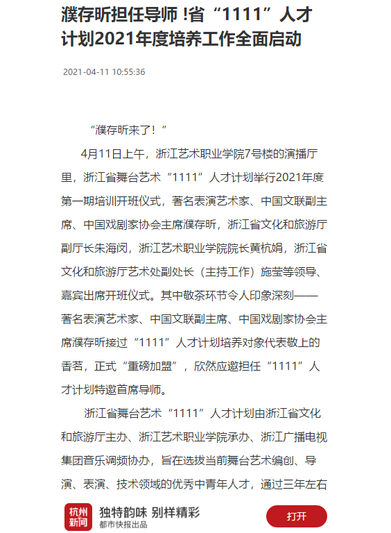 杭州新闻:濮存昕担任导师 !省“1111”人才计划2021年度培养工作全面启动