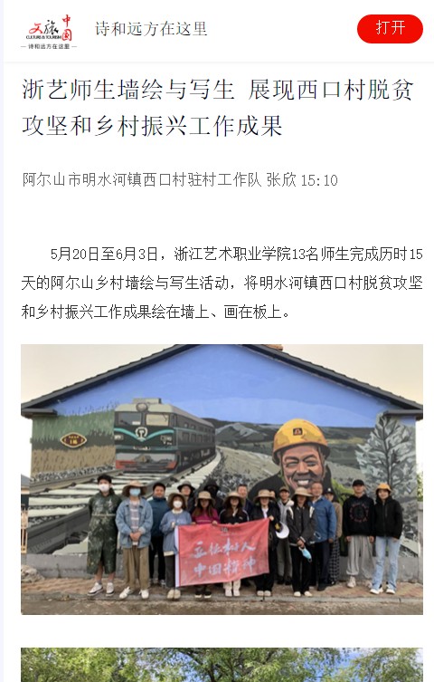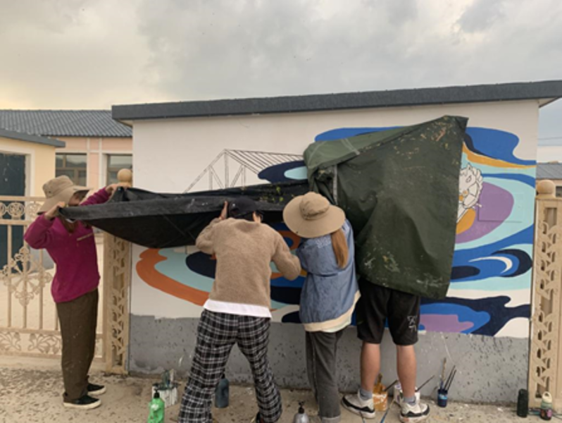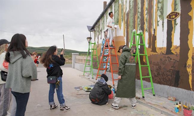 5月20日至6月3日,浙江艺术职业学院13名师生完成历时15天的阿尔山乡村墙绘与写生活动,将明水河镇西口村脱贫攻坚和乡村振兴工作成果绘在墙上、画在板上。