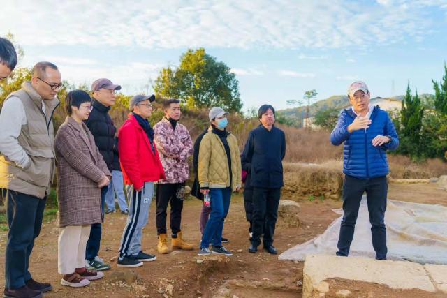 不仅有讲座,还有宋韵遗迹实地采风。11月24日,全体学员去往位于绍兴的“宋六陵”考古现场进行参观考察。近距离察看陵寝中出土的陶片、瓷器、瓦当,踩在千百年前恢宏建筑的基石上,听考古专家讲述背后的故事,描绘当时的场景,学员们仿佛经历了一次历史文化的穿越。