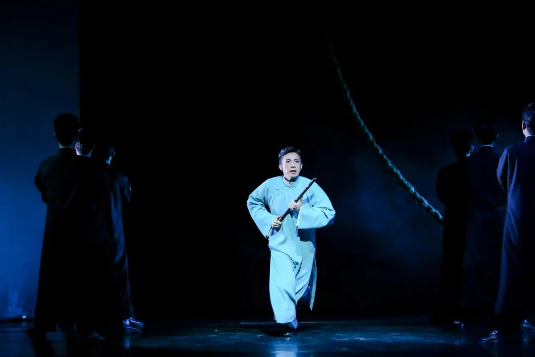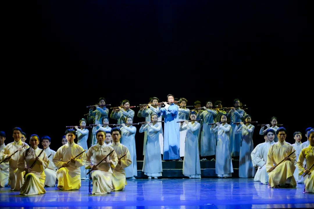 剧中,赵松庭纪念馆落成,众学生执弟子礼,共同吹奏手中之笛,灯光聚焦在一张藤椅上,由黄剑勋饰演的赵先生一袭长衫、手持竹笛端坐其中。那一刻,台下的嘉宾、观众被深深打动。“气力已无心尚在,时时一曲梦中吹。” 赵先生的一生,就是追求笛艺、信仰的一生,也是无私授艺,桃李满天下的一生。