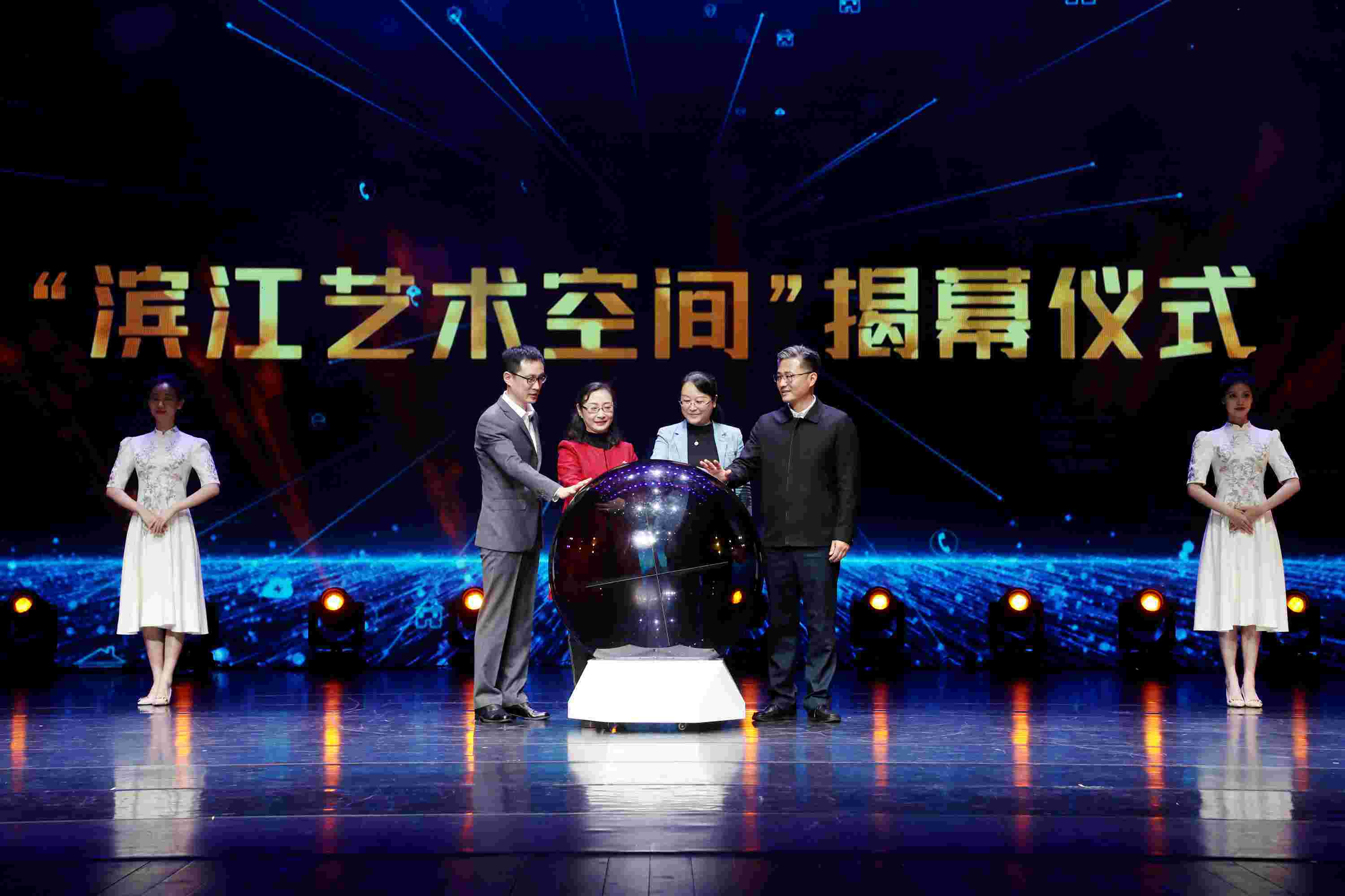陈吉芬、胡嘉欢、薛亮、黄杭娟为滨江艺术空间揭幕。