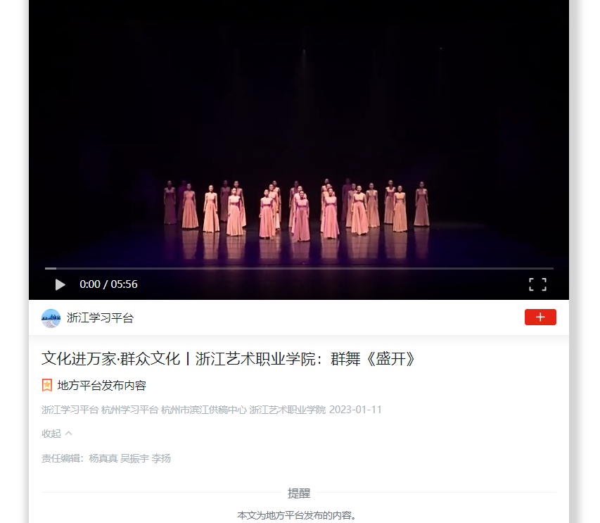 学习强国浙江平台:文化进万家·群众文化丨浙江艺术职业学院:群舞《盛开》