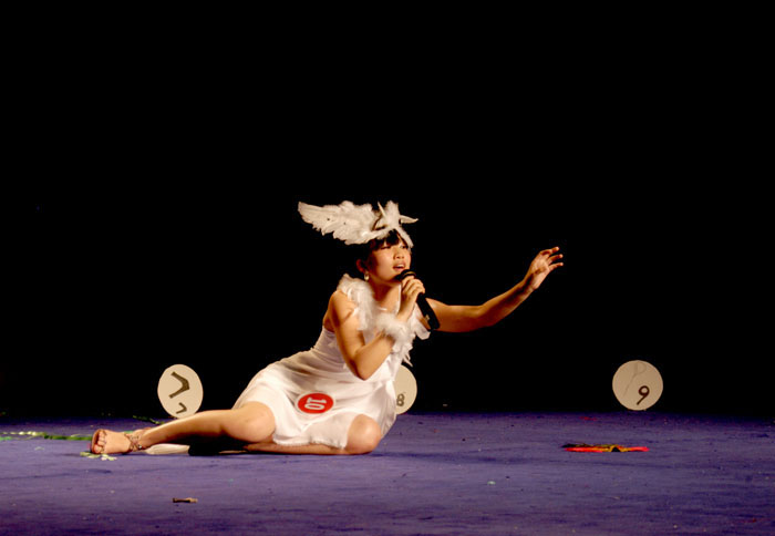 充满活力的舞蹈《青春》揭开了第二届足球宝贝竞赛的序幕。紧接着是神秘而紧张的参赛选手出场环节。舞台上几块数字纸牌按次序摆放,每个数字都代表了一位参赛选手,主持人要求台下观众上台来踢球,“踢”中哪张数字纸牌,被选中的选手就要回答观众提问和表演节目。选手们在后台紧张地等待,台下观众则争相上台。观众的踊跃互动带动了整个活动的氛围,舞台上,足球宝贝们的认真演绎更充分体现着她们的执着和敬业。其中,10号选手带来的才艺是服装展示,她与伙伴们在舞台上尽情展示炫彩霓裳,但有谁想到,此刻她看似轻松的身影背后是意外折断的鞋跟和她的忍痛坚持。而接下来的篮球秀环节,参加表演的同学们则为观众带来了新的视觉冲击,精湛的球技赢得台下观众一片掌声和喝彩。