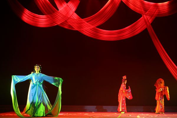 时而哭,时而笑,时而傻,时而闹,时而水袖飘飞,时而凌空倒翻。12月5日至6日,由浙江艺术职业学院06越剧班表演的毕业大戏《梦·昔》在实验剧场隆重上演。十八位姑娘用她们扎实的基本功、精湛的演技,完美呈现了《寻梦》《长袖舞》《断桥》《盗仙草》《春香传》《马 舞》《五女拜寿•哭别》《莲花落》和《葬花吟》等十一个节目。