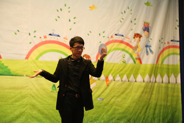 杭州聋人学校设施齐全,我们前去献爱心的成员在他们的学校剧场中呈现了一场视觉盛宴。主持人用手语介绍节目,苏志灶、薛静等同学表演的舞蹈《展开翅膀》,让孩子们看得非常入迷,虽然他们听不见音乐,但柔美的舞蹈动作已在他们的小心灵里激起了丝丝波澜。精心编排的武术表演,让他们真正近距离地感受到了力量之美。莊骐玮同学带去的压轴魔术表演引起了大家的兴趣,魔术师娴熟的手法引来热烈的掌声。在后面的互动环节,同学们还纷纷自告奋勇上台学习魔术。他们的世界很单纯,一张纸巾、一张扑克牌都能让他们格外兴奋。我们爱心小组的成员向孩子们请教了日常语汇的手语,尝试用手语与他们做了一次交流,他们红扑扑的脸蛋和笑声让我们的心和他们的心如此接近。在一片欢声笑语中,活动接近了尾声,但是爱心还在继续蔓延……