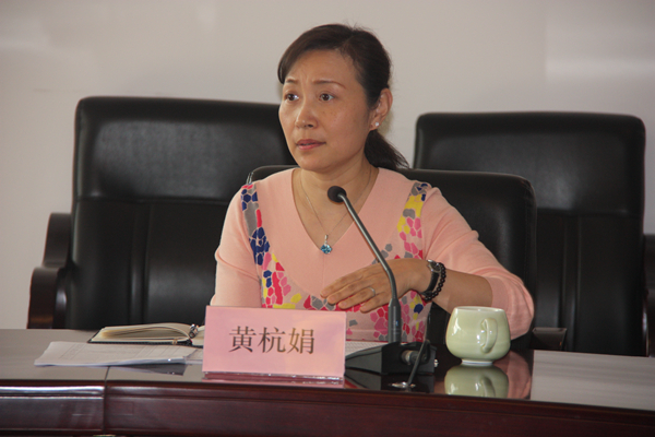 黄杭娟介绍我院基层党组织建设基本情况,并从基层党组织带头人队伍结构、基层党组织带头人产生和工作机制、基层党支部书记培养与使用、基层党组织书记的考核四个方面对基层党组织带头人队伍建设情况做了详细阐述。
