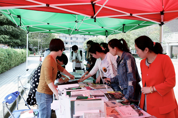 八号楼前人头攒动,一个个帐篷搭了起来,一摞摞书抱上桌面,图书现场展示推荐活动作为本届“读书月”的第一项内容率先亮相。共有1000多种社科、艺术、文学类最新图书参展,所有图书均打折向师生出售,可根据本人需要向图信中心推荐图书,由图信中心查重后统一购买,争取在一个月内上架供师生借阅。活动期间扫一扫图信中心新推出的微信公众号,便可得到精美礼品一份。此次图书现场展示推荐活动,师生读者踊跃购书荐书,个人购买图书近百册,荐购量近千次。