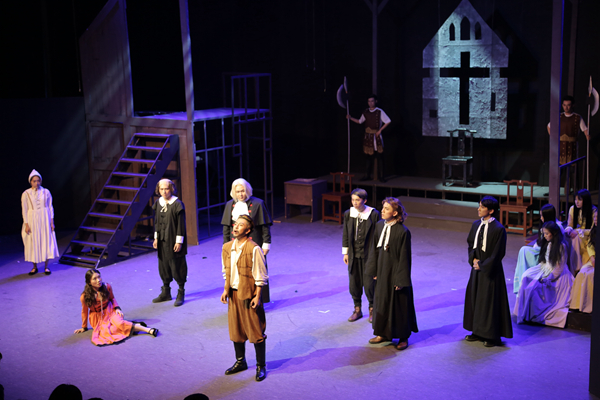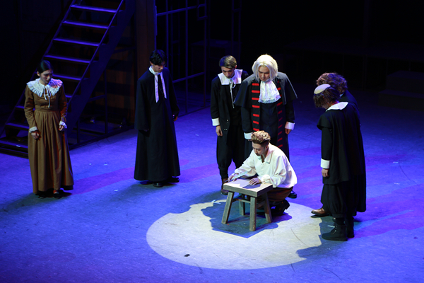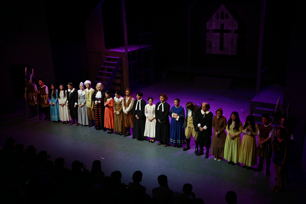 《萨拉姆的女巫》由四幕构成,为了使演员更充分感受该剧的历史背景及民族特点,每幕由剧中角色担任分幕导演,再由总导演史昕进行指导编改组合,努力展现人物思想、感情的层层“褶皱”,着重于闪现人性的光辉。值得一提的是,为提高精致程度,该剧服装得到学生家长的相助,舞美设计和灯光得到了学院美术系教师李昌国、叶文志和他们学生团队的相助。通过排练、演出,同学们的能力得到了全面提升。