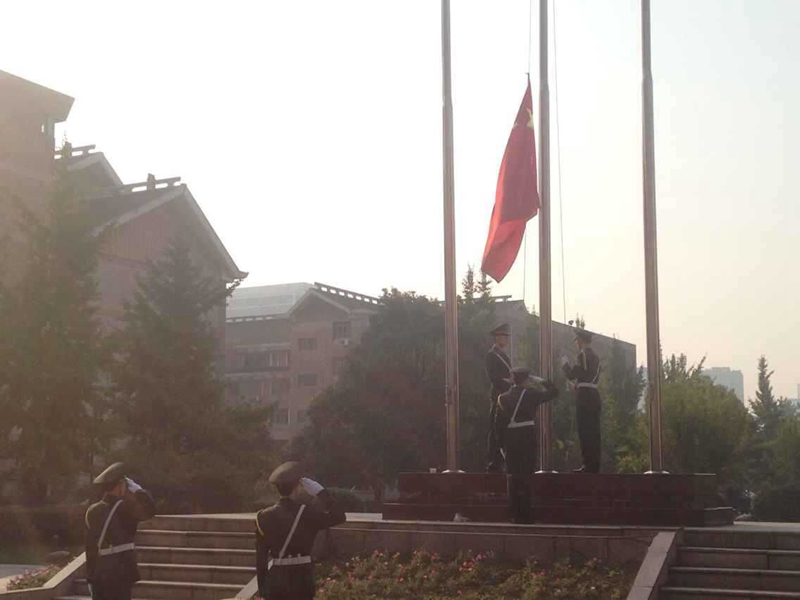 10月12日上午,文管系升旗仪式在8号楼前中心广场举行。2015级文管系全体新生和二、三年级学生代表等参加了仪式。