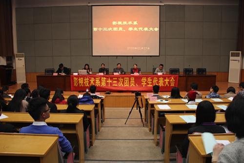11月17日晚,影视技术系第十三次团总支、学生会双代会在图信中心举行。影视技术系党总支副书记彭云波,院团委书记、音乐系党总支副书记章蔓丽,各系团总支书记及影视技术系师生代表等出席会议。