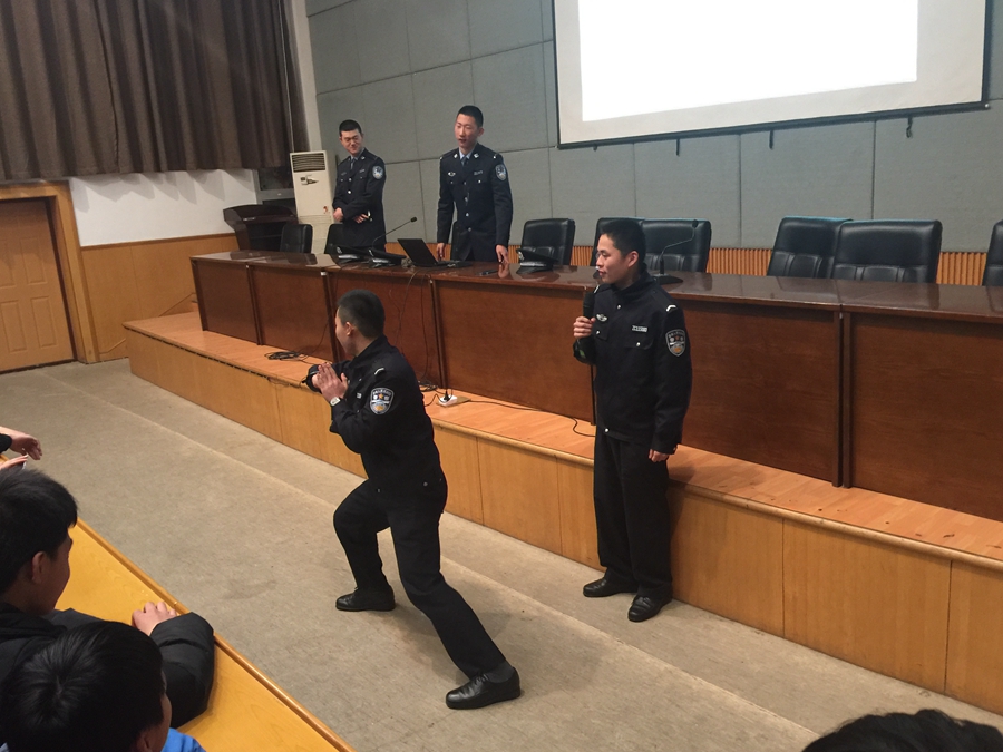 应舞蹈系之邀,3月15日晚,浙江警察学院四名学员前往图信报告厅为全体中专段学生举办《“免疫”诈骗》安全知识讲座。