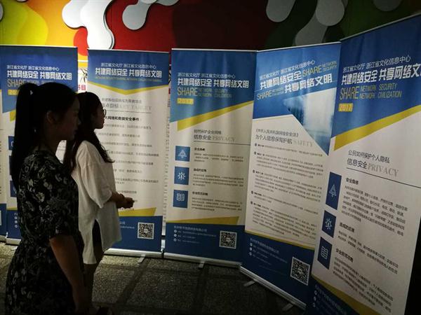 6月19日,浙江省文化系统“共建网络安全 共享网络文明”网络安全法宣传教育巡展活动走进我院,在8号楼大厅开展相关法律知识的展览,这是继6月1日《中华人民共和国网络安全法》正式施行之后,我省文化厅在文化系统内进行的一次为加强网络安全意识和法律意识的普法活动。