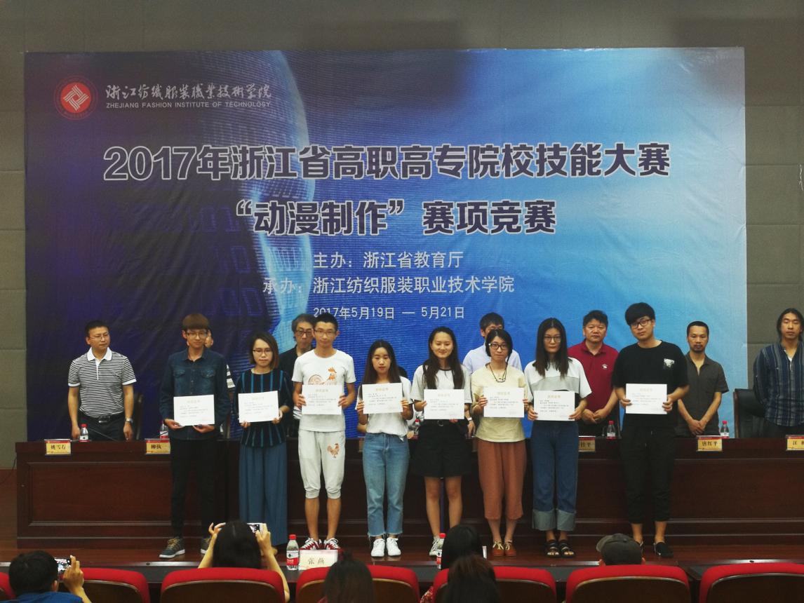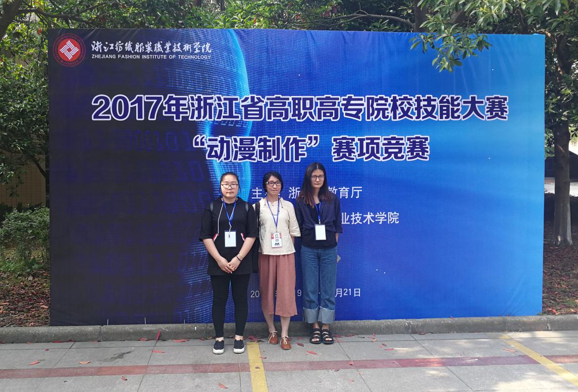 近日,由浙江省教育厅主办的2017年浙江省高职高专院校技能大赛“动漫制作”赛项竞赛在浙江纺织服装职业技术学院落下帷幕。浙江艺术职业学院美术系动漫设计专业学生刘家鑫、郑晨怡同学分获三等奖,黄月娇同学获优秀奖。