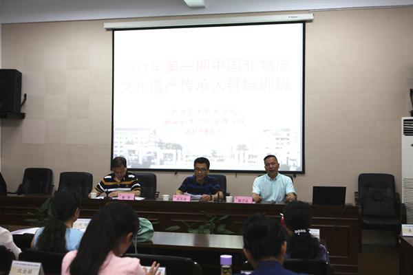 本次培训由文化部非遗司、浙江省文化厅主办,浙江艺术职业学院承办,浙艺文化管理系承担具体教学任务,来自吉林、河北、福建、广东、安徽、江西、江苏、贵州、湖南、浙江等省份的共45名学员参加了本期培训。本次培训班是本年度的第一期中国非遗传承人群培训班,我院领导高度重视,几次召开专题研讨会。培训班严格按照文化部、教育部、文化厅要求及联合国教科文组织提出的“正宗、杰出、创新、适销”的八字宣言,在总结前几期经验基础上,认真编写本期培训计划和课程安排。邀请胡玉清、汪自强、阎静书、郑王义、王玉田、马国庆等国内一流专家、大师、学者等授课,他们有的深谙敦煌古籍,有的是娴熟利落的装裱大师,有的是可以让书卷“重生”的指尖舞者,还有将传统平面拓技术体系提升为立体拓表现体系的拓艺专家等等,他们给学员们带来一场场精彩纷呈的课堂及实践教学。培训班安排的实践操作内容有:书画装裱、古籍修复、仿古籍装帧形式制作、传拓技艺等国家非遗项目。为弥补在民间师徒传授过程中知识文化积累的不足、专业理论的不完善,在培训过程中采用理论与实践相结合,并以参观交流考察为专业拓展部分,同时采用集中授课与小组研讨相结合、名家授课与案例教学相结合的方式。