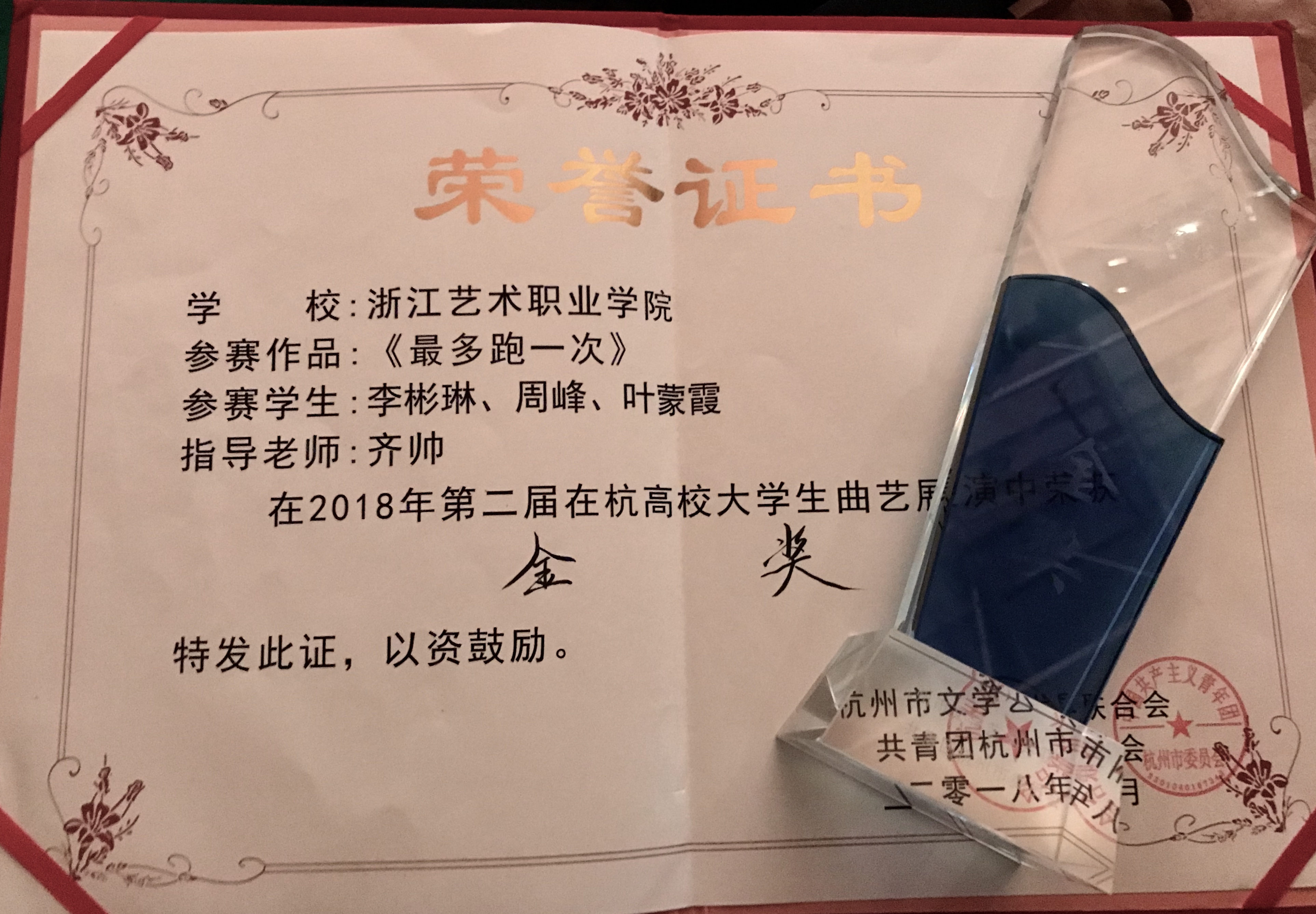 文化管理系学子喜获第二届在杭高校大学生曲艺展演金奖、铜奖