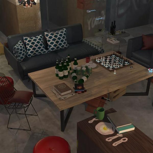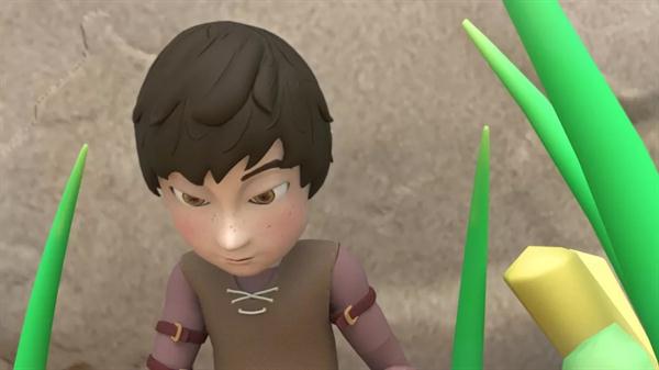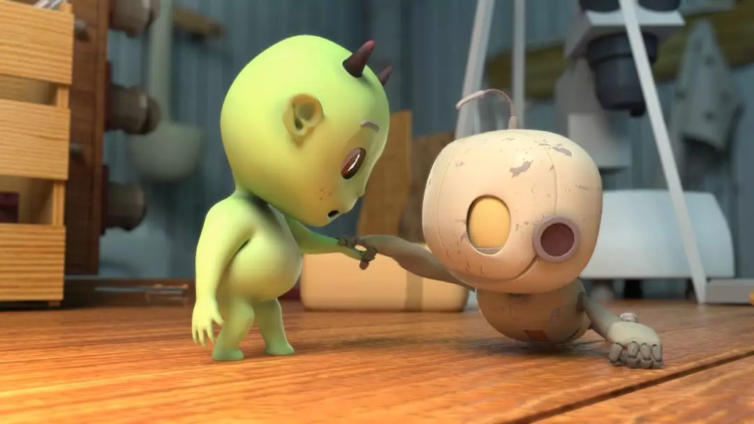 展厅的左右两侧,有两块屏幕,右侧正在展映的作品名称叫《绪》(制作:徐佩波、赵乐维,指导老师:孙煜珑),动画故事讲的是失去家人的博士孤独地生活在一间实验室里,陪伴他的是一个破旧的小机器人,博士意外地发现小机器人芯片记载着他女儿的信息……