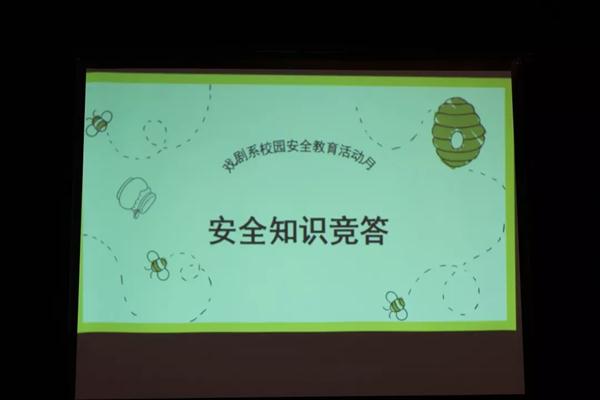 5月23日晚,戏剧系校园安全教育活动月之“安全知识竞赛”在小剧场举行。本次竞赛分中专组与大专组,共18个班级参加,实现了班级全覆盖。戏剧系党总支专职副书记许瑛、辅导员及近80名学生到场观看比赛。