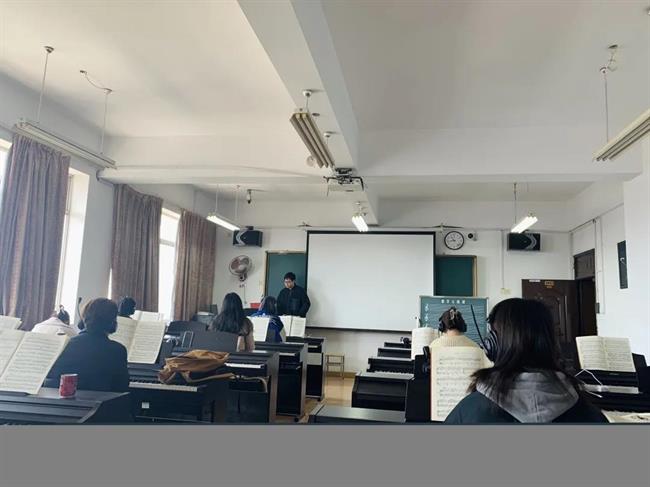 熊壮壮,民乐艺术指导。本次助讲培养中期考核,他通过越剧音乐专升本班钢琴基础公开课教学,展示其半年来在岗位上的所学所获。课堂上,他通过不同类型曲目的讲解和示范,从节奏、指法、读谱等方面给同学们普及了学习钢琴演奏的基础知识点,并通过入校以来对同学们的了解和自身练习乐器的经验,向学生们提出了日后学习钢琴的建议和要求。