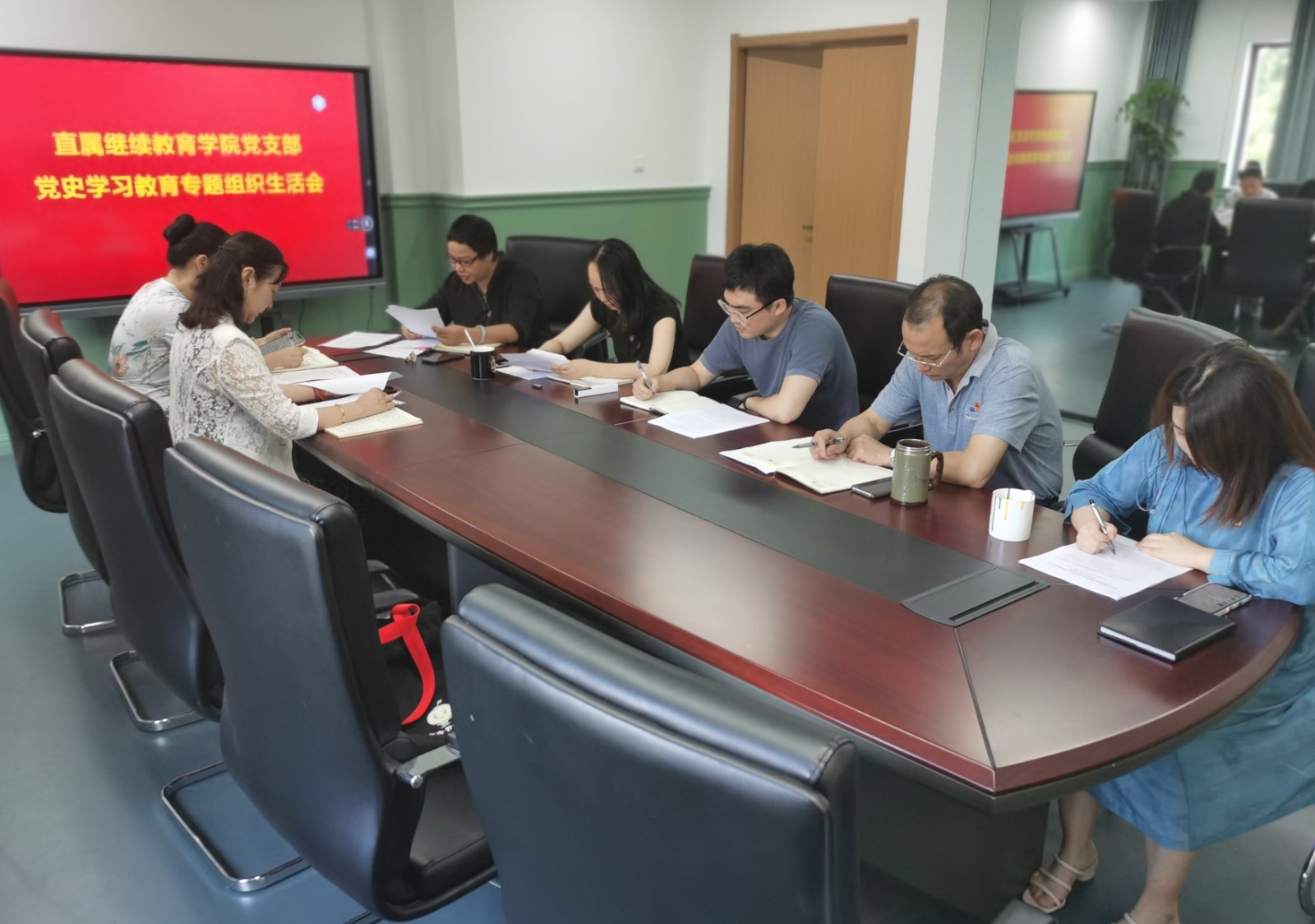 7月15日下午,继续教育学院党支部召开党史学习教育专题组织生活会,浙艺院长黄杭娟以普通党员身份参会。