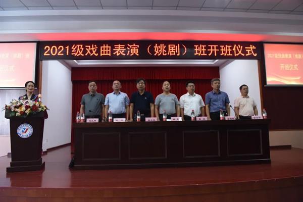 9月17日下午,浙江艺术职业学院戏曲学院党总支书记兼副院长谢青,余姚市文化和广电旅游体育局党委副书记、副局长董斌,余姚市教育局党委委员、副局长张文表,余姚市人社局党委委员、副局长金利明,余姚市财政局行政事业科科长余立,余姚市职业技术学校校长彭金华,余姚市姚剧保护传承中心主任倪乐辉出席2021级戏曲表演(姚剧)班开班仪式,余姚市文化和广电旅游体育局副局长周凌宏主持。