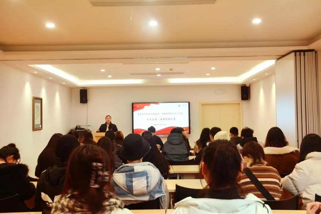 12月17日,美术系学生党支部开展“奋进新征程担当新使命 争做新时代文艺工作者”第二届主题微党课比赛。此前,来自第38期党校学员的10名同学,经过系部初赛选拔后,共有5名同学脱颖而出参加本次微党课决赛。美术系组织员章彪、学生党支部书记龚林峰、团总支副书记朱丹丹出席并担任比赛评委。全体学生党员、入党积极分子代表、青年理论学习小组成员代表等现场观摩学习。