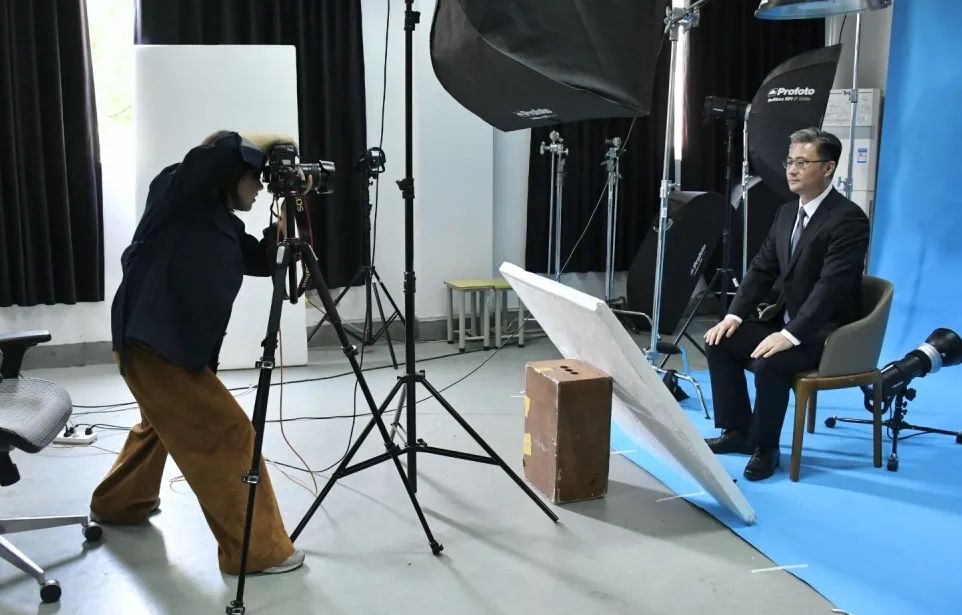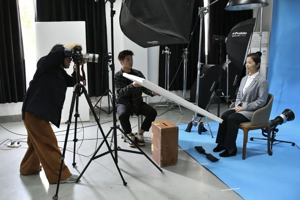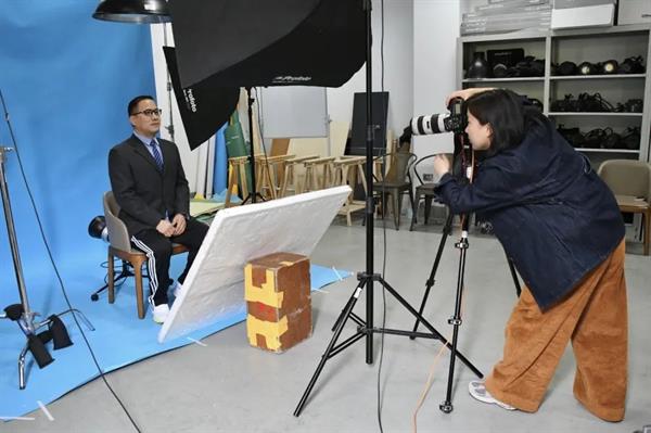 拍摄现场,老师们容光焕发,根据证件照的拍摄要求与照片用途调整外形外貌,坐在聚光灯前,端正坐姿,面带微笑,呈现出最佳的状态。本次活动由摄影摄像教研室支持,教研室主任王欢作为摄影服务者,秉着服务浙艺师生的初心,拍摄过程中与老师们时时交流,努力调整老师们的拍摄状态,细致地进行姿态的调整、衣着的整理和表情的管理,捕获住尽善尽美的瞬间,老师们按序对拍摄照片进行挑选,拍摄氛围轻松愉悦,欢声笑语不断。