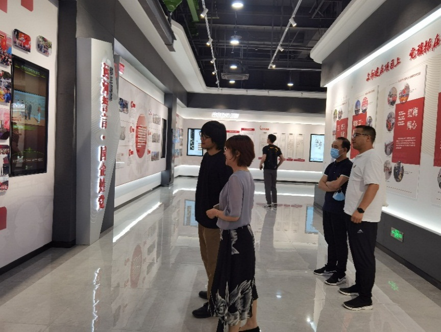 浙江艺术职业学院院长、党委副书记黄杭娟,杭州市运河集团党委副书记、董事费建利和设计学院全体教职工一同参观了杭州市运河集团党建和清廉文化教育实践基地,聆听并观看了“运河荣耀·使命担当”、“运河征程·砥砺前行”、“运河誓言·国企姓党”、“同舟共济·初心如磐”四个展区等展示以及“支部建在项目上、党旗插在工地上”“一企业一品牌、一支部一亮点”等特色品牌做法,接受了一场很好的红色运河文化、奋进运河精神、清廉运河的学习教育。设计学院党总支于今年年初加入大运河(杭州)党建联盟,参观过程中双方围绕党的建设、校企合作、协同育人等方面进行了深入的交流研讨。