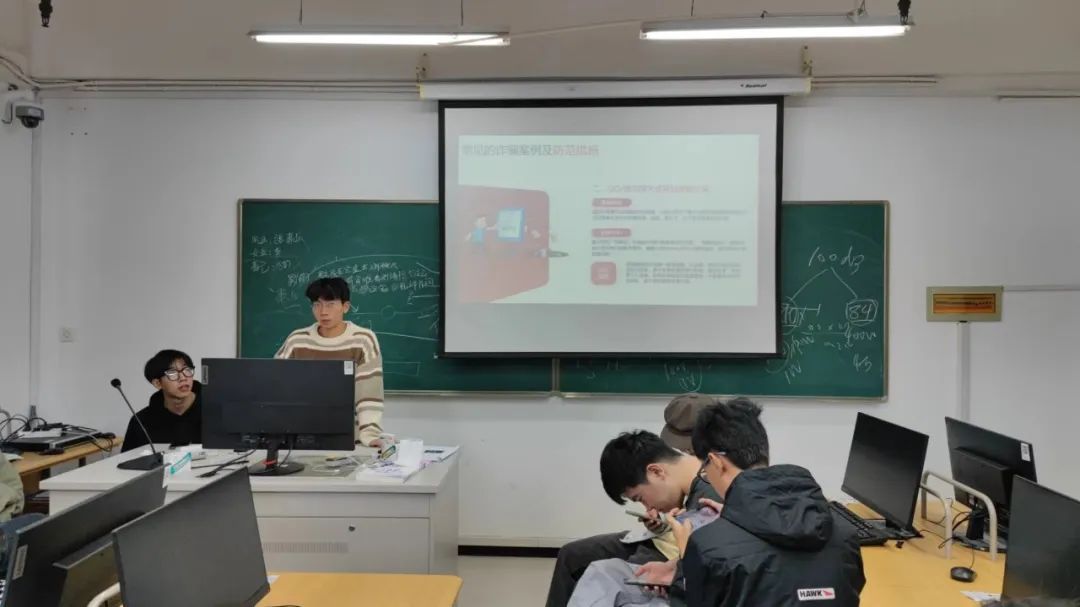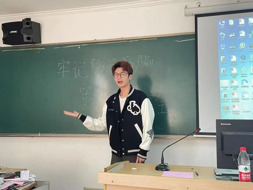 各班围绕什么是电信网络诈骗、电信诈骗的常见形式、如何识别防范电信诈骗和上当后的补救措施等方面展开介绍,给大家敲响预防诈骗的警钟,提醒大家时刻保持清醒与警惕。