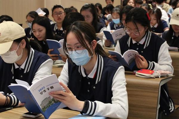 新生始业教育是入学后的“第一课”,对新生角色切换起到重要作用。辅导员林慧在学生日常学习与服务保障方面上台为新生们讲解,带领新生一起学习《学生手册》。