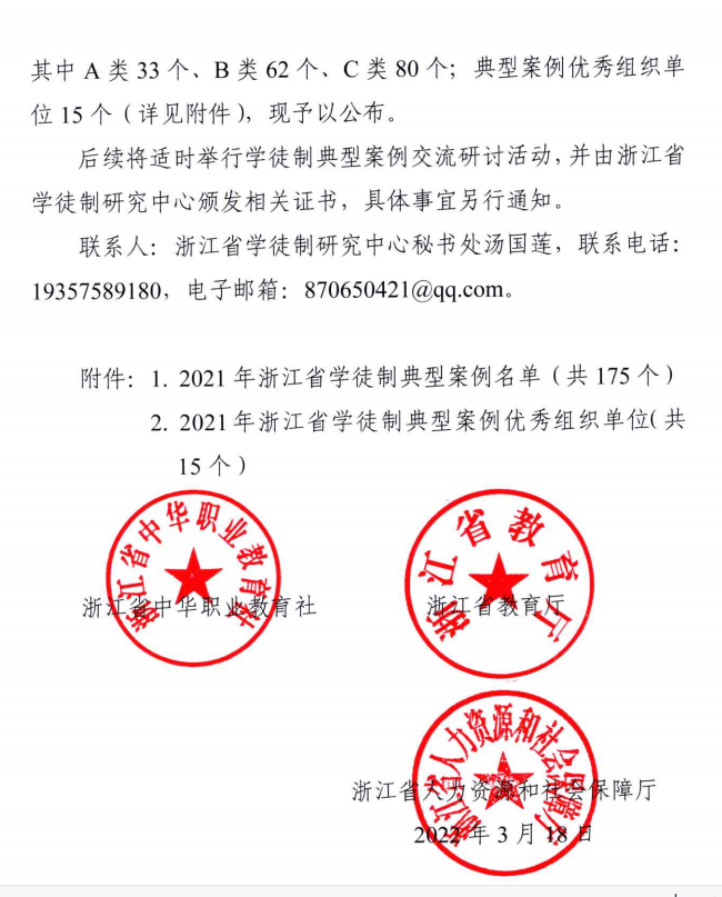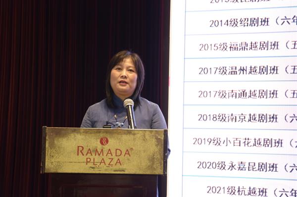 12月9日,由省教育厅、省人力社保厅和省职教社指导,浙江省学徒制研究中心主办的2022年浙江省中国特色学徒制研究学术报告会在杭州顺利举行。会上公布了2021年浙江省学徒制典型案例评选结果,浙江艺术职业学院申报的《聚资源 推剧目 出人才——校团合作培养戏曲表演人才的现代学徒制探索与实践 》荣获高等职业院校典型案例(A类)。戏曲学院副院长周伟君受邀参会并做主旨发言。