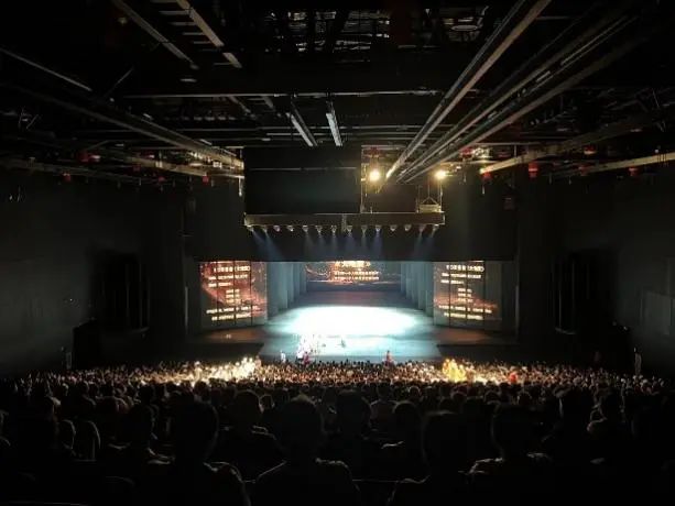 在五号剧院,同学们观看全息秀《幻影》,感受全息投影与现实碰撞的魅力。全息幻影秀通过全景LED屏和全息投影成像技术,用先进的声光电科技手段和舞台机械结合传统舞台演出,演绎了白蛇许仙等千古绝唱,给观众强烈的视觉冲击和心灵震撼。