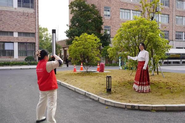 拍摄前,身着红色志愿服的同学们热情接待了“特别模特”,摄影过程中,耐心引导着模特们,以求在春日艳阳里,用相机为她们定格最美身影,在浙艺的摄影棚里,同学们布好灯光,举起相机,“咔嚓——”拍摄下一张张精美的照片。