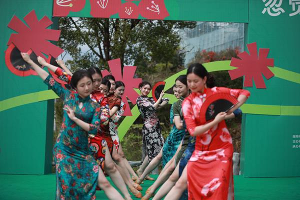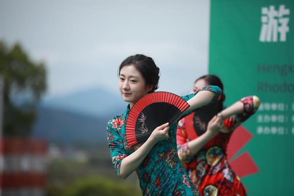 白冠山的杜鹃花漫山怒放,美不胜收。开幕式在《茉莉花》悠扬的旋律中拉开帷幕,翩然的舞姿如柔风拂来,舞扇的飘逸与灵动创新演绎国风舞韵。