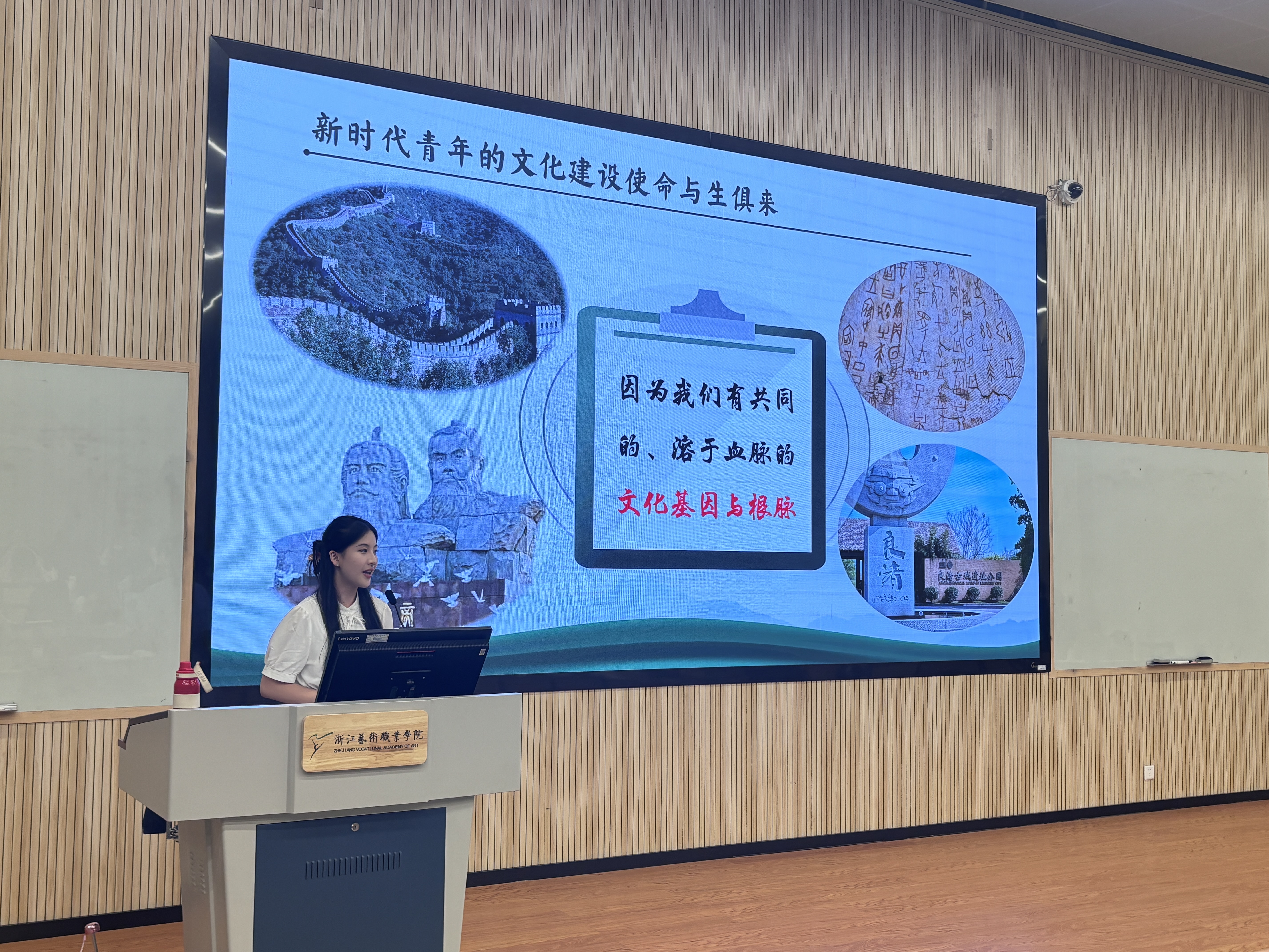 音乐学院吴歆怡追根溯源,讲述了我们应当如何谱写新时代文化新篇,同时以自身出发,将如何焕发新青年文化建设使命全面分析;设计学院方园通过以点为面分析浙江文化,点对点指出新时代青年如何知浙江、为浙江、兴浙江,并生动形象地介绍了浙江璀璨的历史文化资源;音乐学院蒋陈竹把二胡与国乐传承巧妙结合,强调传承发扬中华优秀传统文化的重要性与必然性;戏曲学院柴轶佳自小浸润在戏曲家庭的熏陶之中,饱含真情地讲述自己在戏曲道路上的酸甜苦辣,激励走在戏曲道路上的学子们,使其成为助推戏曲事业勇攀新高峰的新力量!