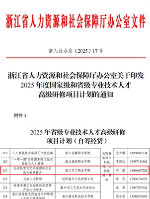 近日,浙江省人力资源和社会保障厅公布了2025年度国家级和省级专业技术人才高级研修项目评审结果,我校申报的《全省民营文艺表演团体团长能力素质提升》项目成功获批。