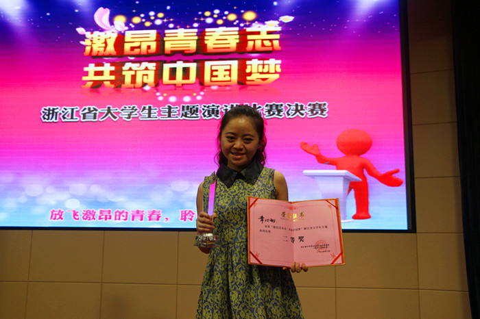 6月7日下午,由中共浙江省委宣传部、浙江省文明办、共青团浙江省委、浙江省教育厅、浙江省学生联合会共同主办,共青团浙江大学委员会承办的“激昂青春志,共筑中国梦”浙江省大学生主题演讲比赛在浙江大学紫金港校区临水报告厅隆重举行。经过激烈角逐,我院戏剧系学生章心如荣获高职高专组二等奖。