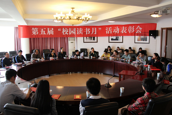 4月29日中午,浙艺院第五届“校园读书月”表彰大会在行政楼三楼会议室举行。副院长章轲、相关职能部门负责人、六系团总支书记和各项活动获奖师生参加会议,会议由图信中心副主任金银琴主持。