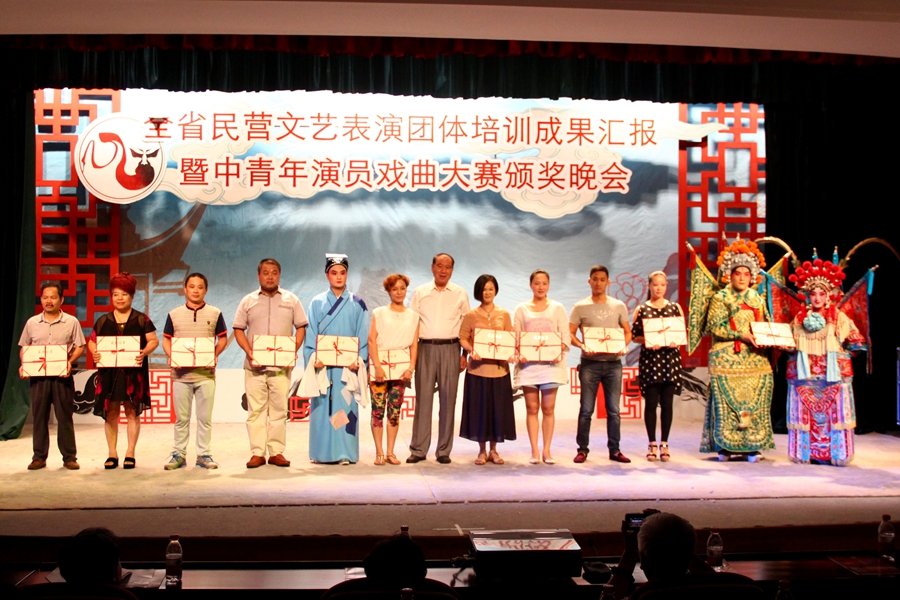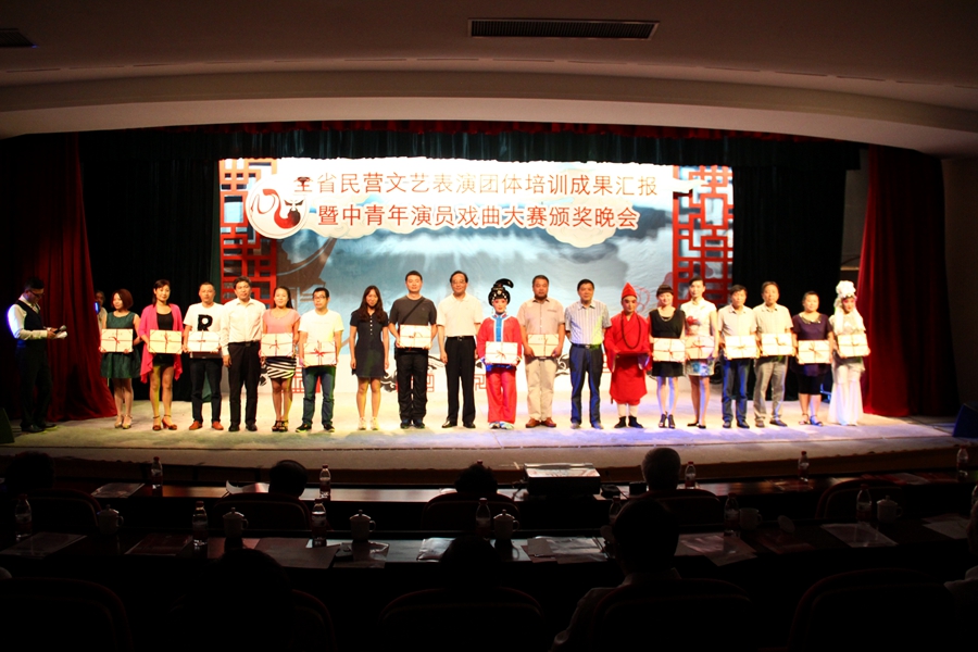 经过一个多月的比赛,8月18日晚,2014年浙江省民营文艺表演团体中青年演员戏曲大赛在省政协联谊俱乐部小剧场,以一场颁奖晚会的精彩表演完美落幕。当晚不仅是本次大赛的颁奖晚会,同时也是部分金奖演员培训成果汇报演出,浙江艺术职业学院戏剧系学生倾情助演。出席晚会的领导有全国政协文史委副主任、省戏剧发展促进会会长周国富,省政协常委、省政协文卫体委主任杨建新,省文化厅党组书记、厅长金兴盛,省政协文卫体委原主任、省婺剧促进会会长李林访,省政协文卫体委专职副主任、省戏剧发展促进会秘书长叶成伟,省文化厅党组成员、副厅长黄健全,浙江艺术职业学院党委书记林国荣,省委宣传部文艺处处长曹鸿等。晚会由浙江电视台著名节目主持人更生主持。晚会对本次大赛的获奖演员个人和组织进行颁奖。本次比赛共有金奖12个,银奖28个,铜奖22个。