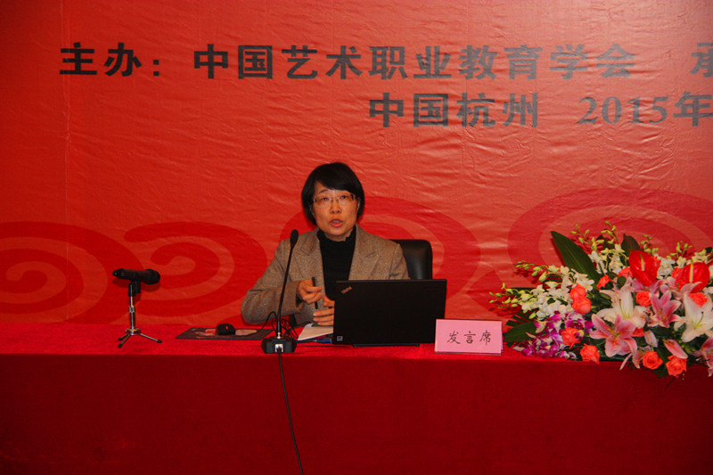 浙江艺术职业学院党委书记、副院长朱海闵作了《高等艺术职业教育改革创新的实践与思考》主题发言。她从改革创新的坚实基础、机遇和挑战、创新人才培养模式、创新课堂教学、强化艺术创作与研究、创新校园文化、创新人力资源配置、创新体制机制等方面讲述了浙江艺术职业学院创新艺术职业教育发展的重要举措。她表示,学院将结合“十三五”规划的制定进一步完善顶层设计,把握好国家对高等艺术职业教育的目标与要求,把握好教育教学改革创新的系统性整体性协同性,把握好艺术教育的独特规律;将进一步强化落实,坚持将改革创新举措落小落细落微,为培养高质量艺术专门人才,服务文化强国强省建设做出新贡献。