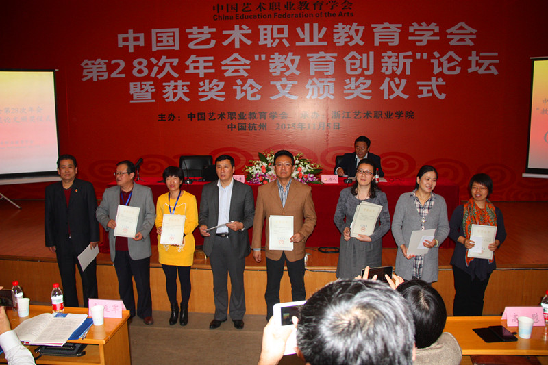 11月6日下午,中国艺术职业教育学会第28次年会“教育创新”论坛暨获奖论文颁奖仪式在浙江艺术职业学院图信中心报告厅举行。中国职业教育学会全体会员代表、特邀嘉宾、学院教师代表等参加了会议。会议由学会副会长高德峰主持。