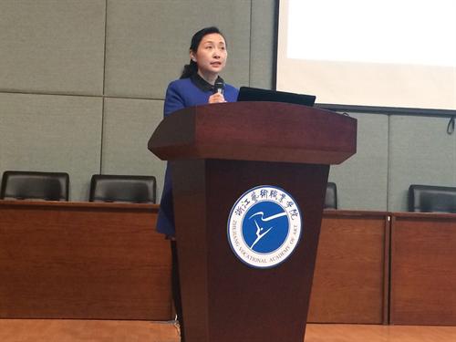 动员大会上,黄杭娟作动员讲话。她在讲话中指出开展文明修身活动是大学生自身成长成才的需要,是继承和弘扬中华民族优秀传统文化的需要,更是当前时代发展的需要。她希望浙艺学子能够外修其能、内修其德,最终成为德艺双馨的艺术人才,真正成为富有浩然正气、蓬勃朝气、昂扬锐气的一代新人。