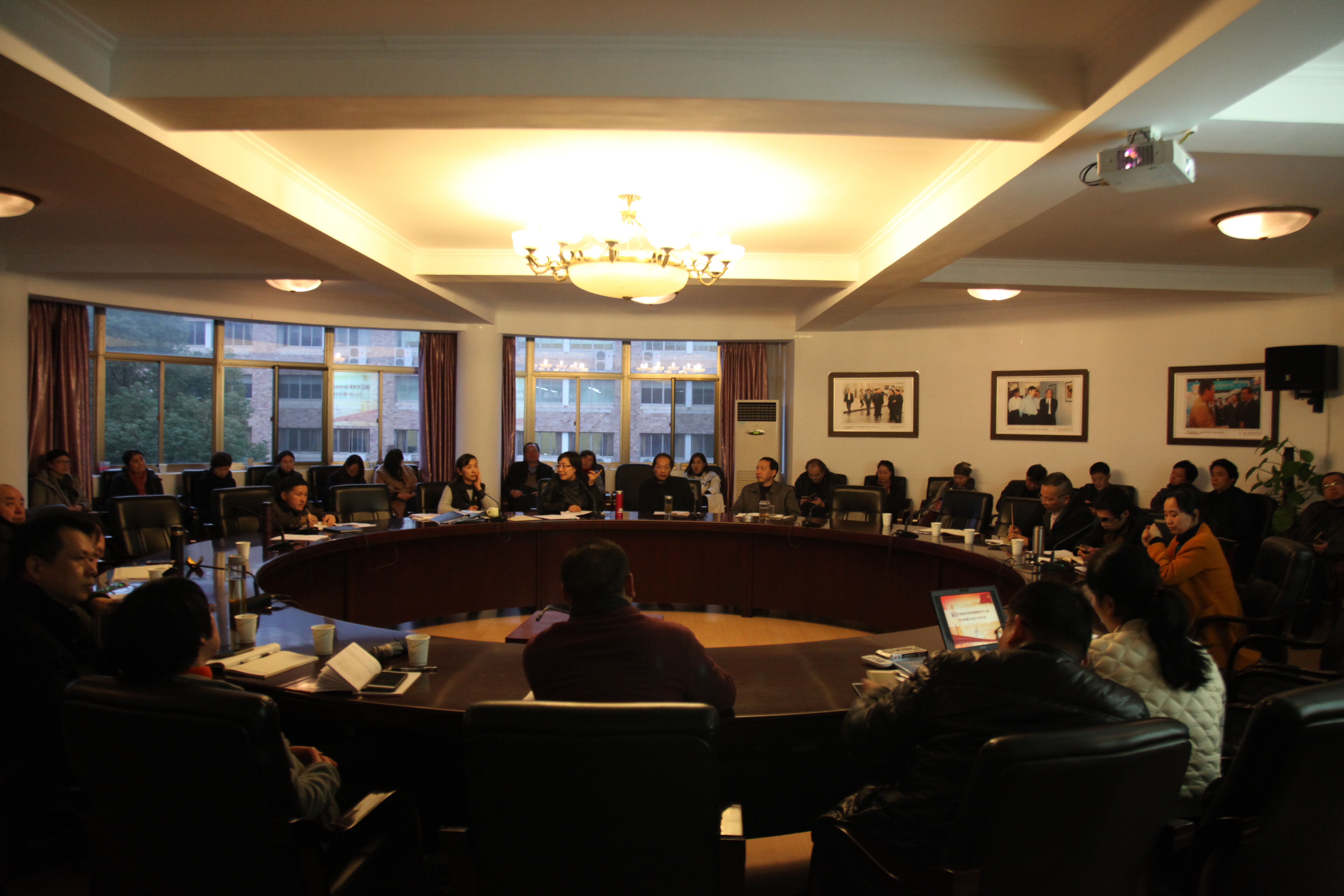 12月13日下午,浙江艺术职业学院党委理论中心组举行2016年第16次扩大学习会,学习习近平总书记在全国高校思想政治工作会议、在第十次“文代会”、第九次“作代会”开幕式上的重要讲话精神,学习省委十三届十次全会和中共浙江省文化厅直属机关第九次代表大会精神。院党委班子成员、副处以上干部、思政理论课教师等参加学习。院党委书记朱海闵主持学习会。
