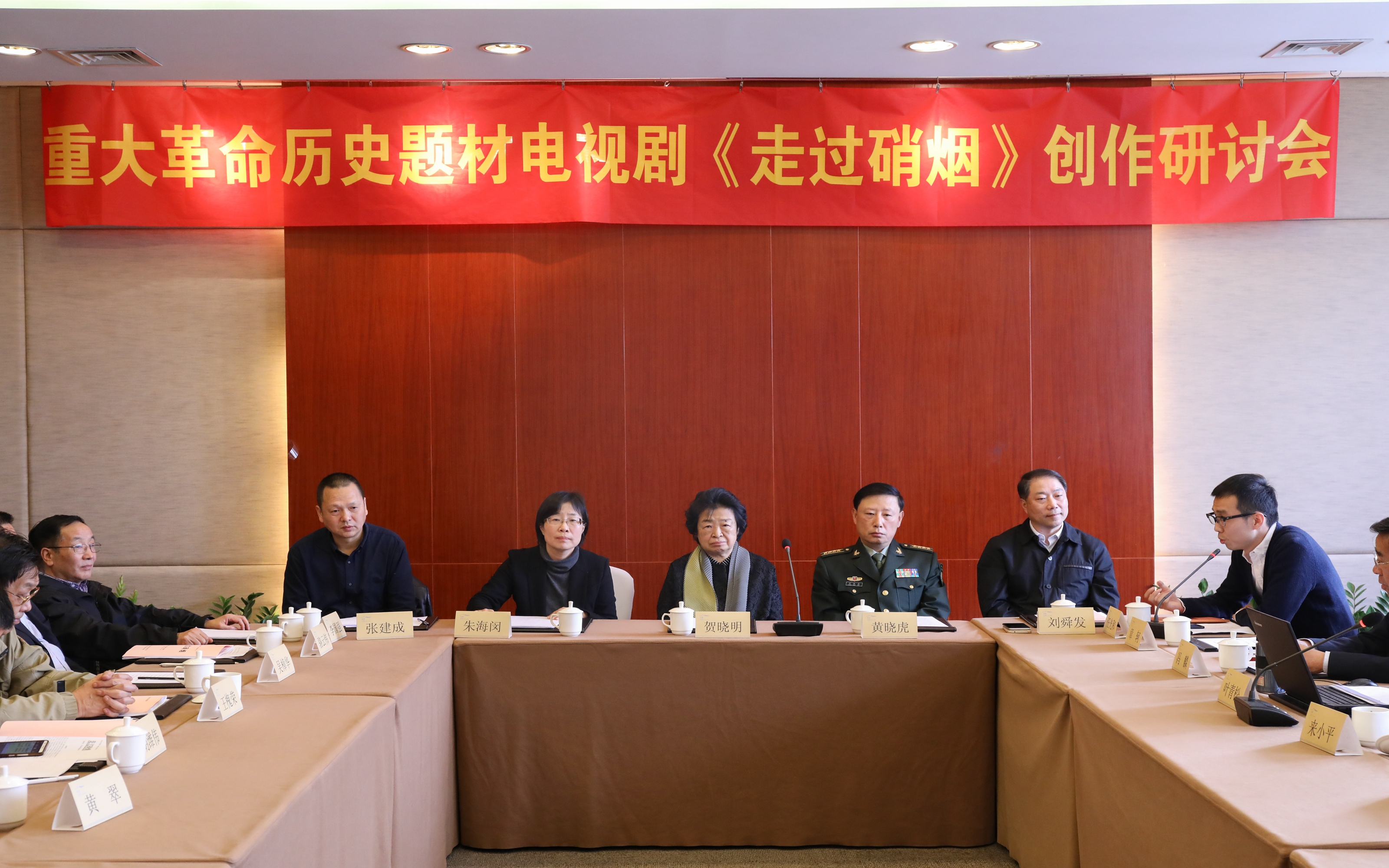 贺晓明在会上发言。她说,我小时候是仰望着黄司令,听他讲过很多历史事件、战友、战斗故事,觉得穿军装的大人们都好忙。后来,黄司令成了贺龙传记领导小组组长,我跟着他工作,又有过不少接触。黄司令等老一辈的音容笑貌和有些具体事情我们都亲眼见过,也见证过一些历史片段,我们对电视剧来说就是一个桥梁,说一说这件事到底是怎么回事。贺晓明对电视剧提出了希望,黄司令指挥的部队是离不开老百姓的部队,是为了老百姓利益而打仗的,电视剧里群众场面要多,群众角度要多。她还提到最近大火的电视剧《人民的名义》,我们的作品是拍给年青人看的,要把好的传统传承下去,希望像《人民的名义》一样获得广泛认同。