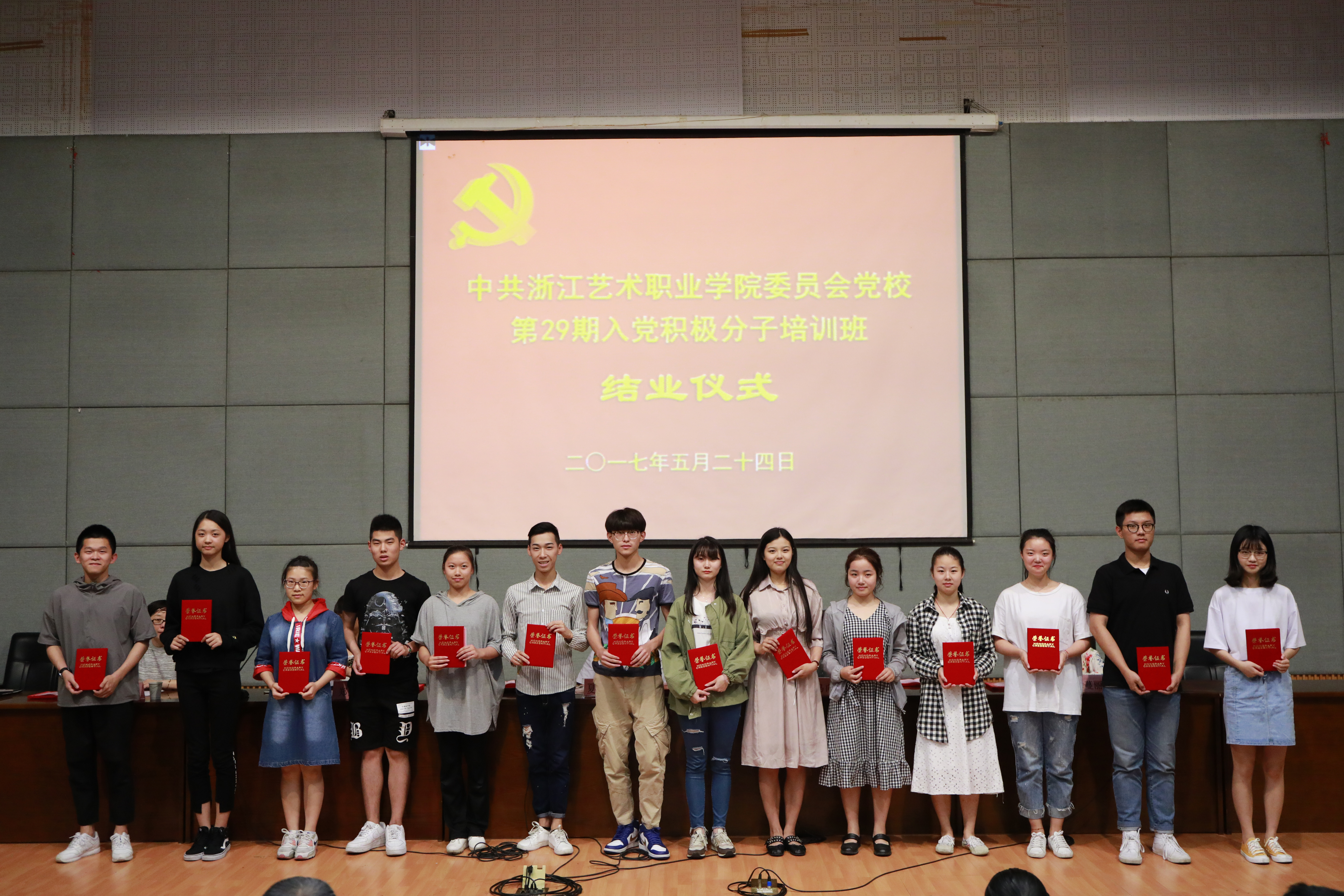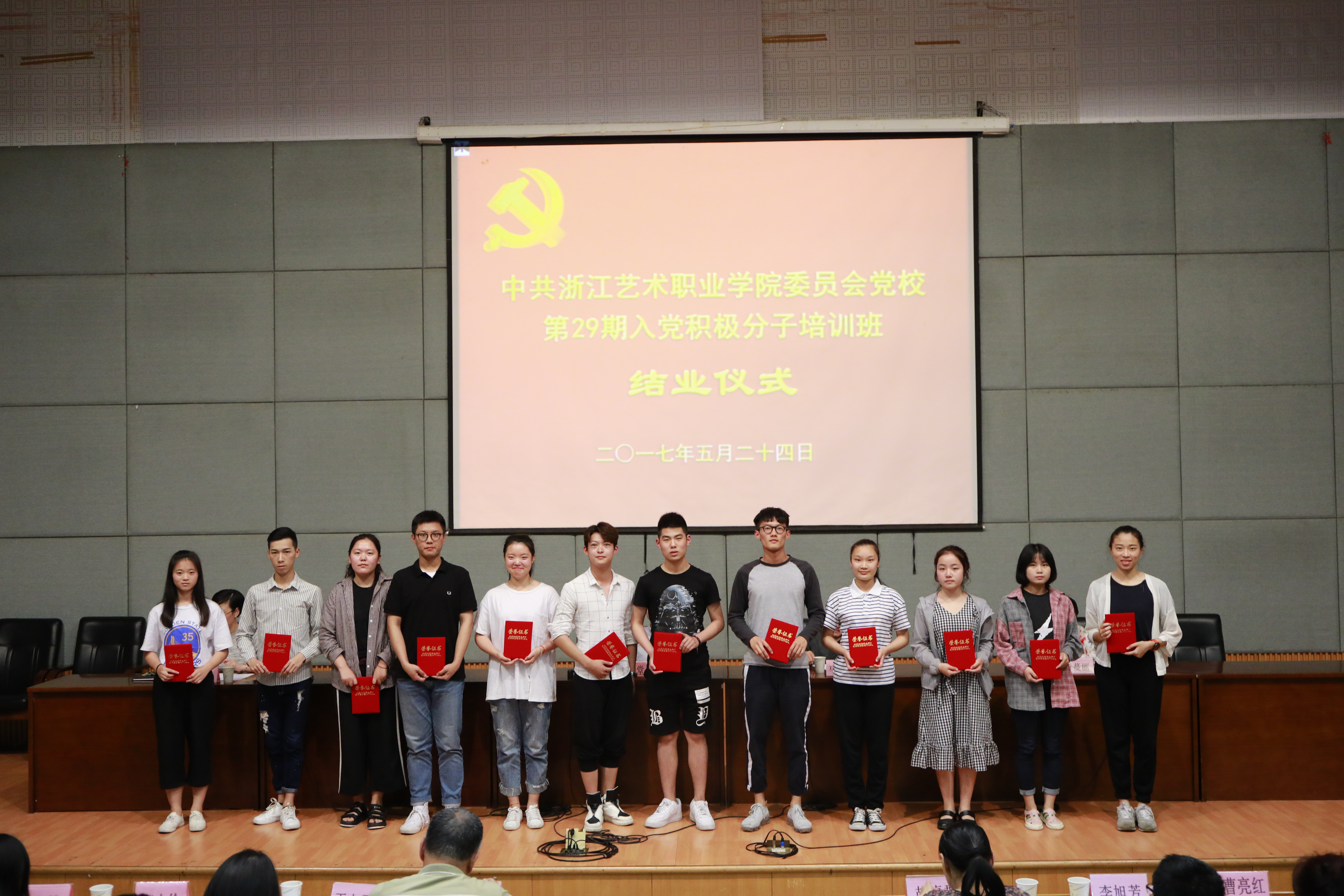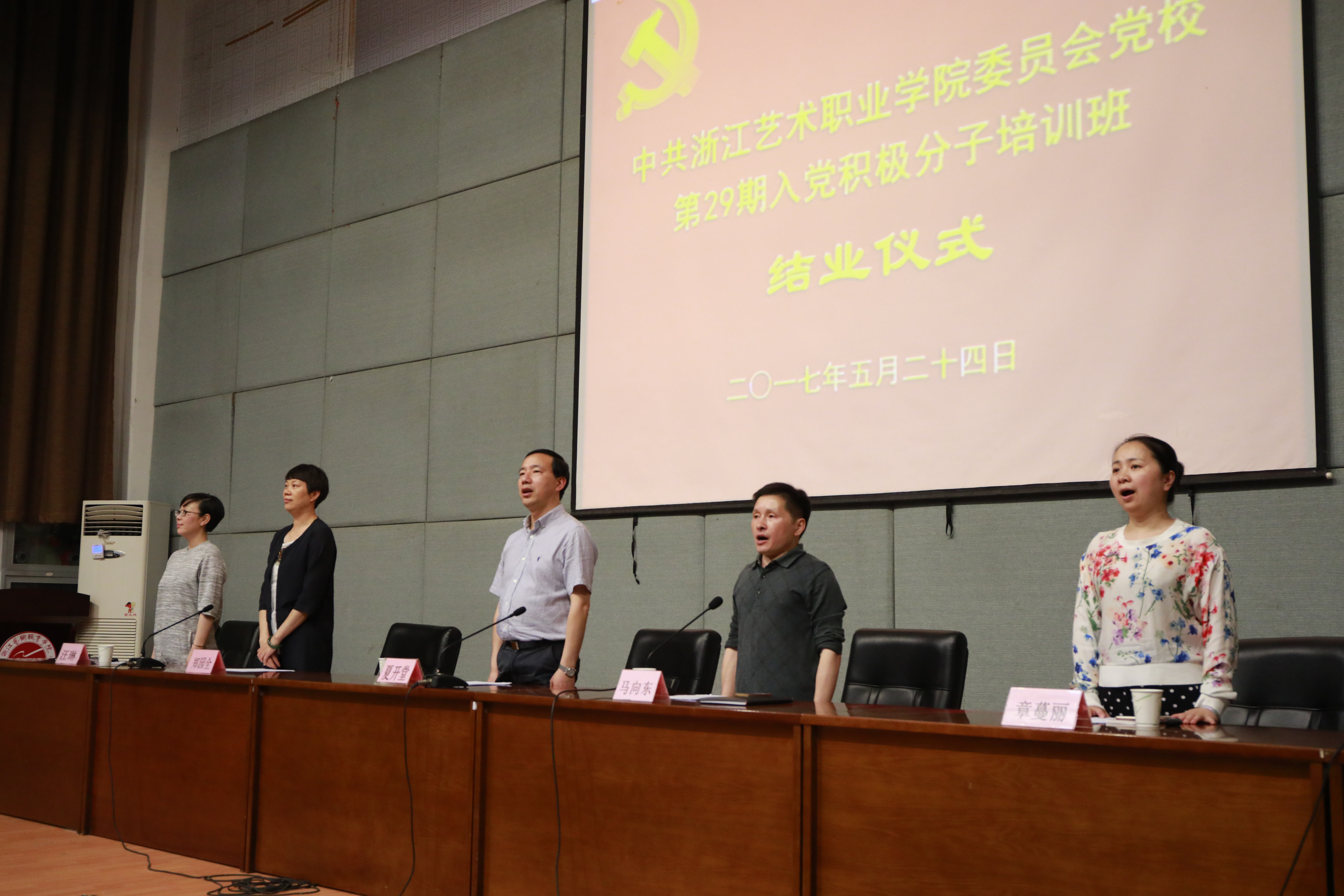 5月24日晚,浙江艺术职业学院党校第29期培训班结业仪式在图信中心报告厅举行。党委委员、副院长夏开堂,党校校务委员、党委宣传教育处处长马向东,基础教学部副主任(主持工作)郑园全、党校校务委员、音乐系党总支副书记章蔓丽,组织处副处长汪琳,各系党总支副书记、党校教研室教师、班主任和本期培训班学员等出席仪式。马向东主持结业仪式。