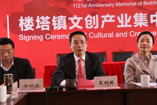 楼塔镇党委书记夏利明对出席签约仪式的领导嘉宾表示了感谢,对签约双方表示了祝贺。千年楼塔,自古风雅,因清水而美,因文化而名。他表示本次活动对楼塔这个千年古镇而言,是古韵与现代、传承与创新的完美结合,他相信双方的合作一定会结出丰硕的成果。