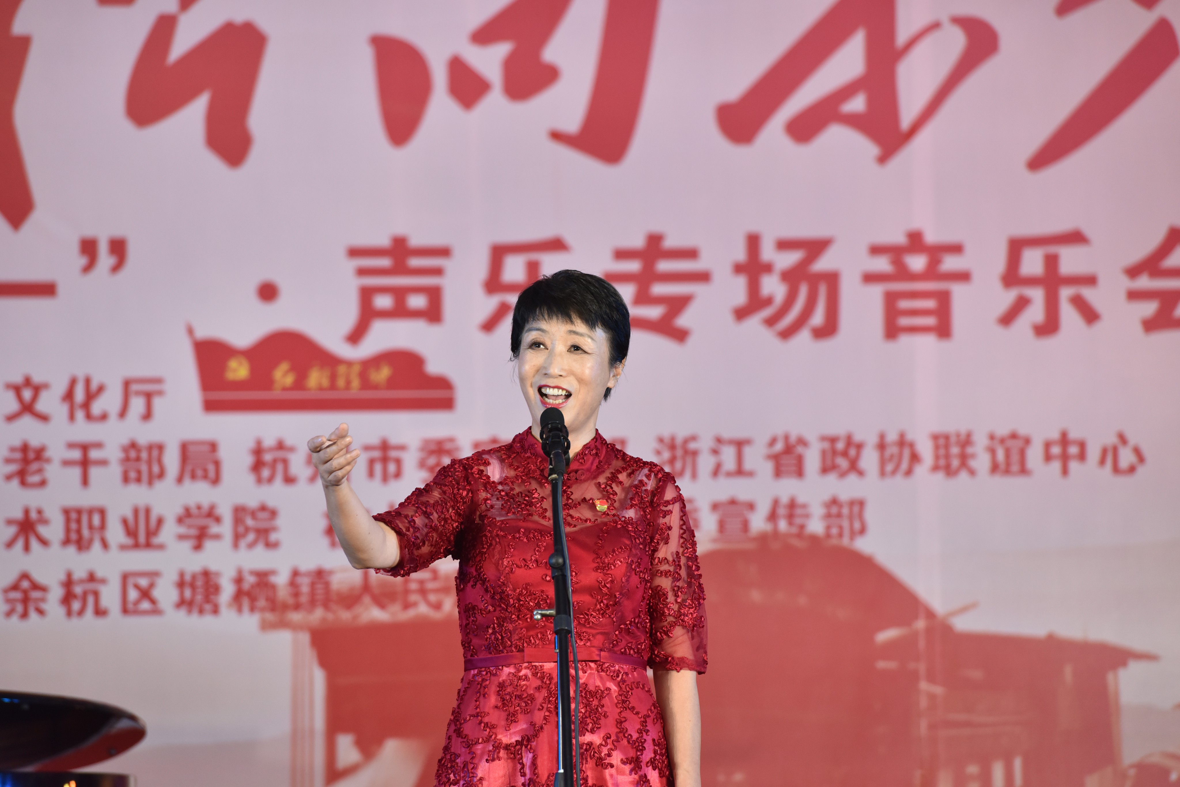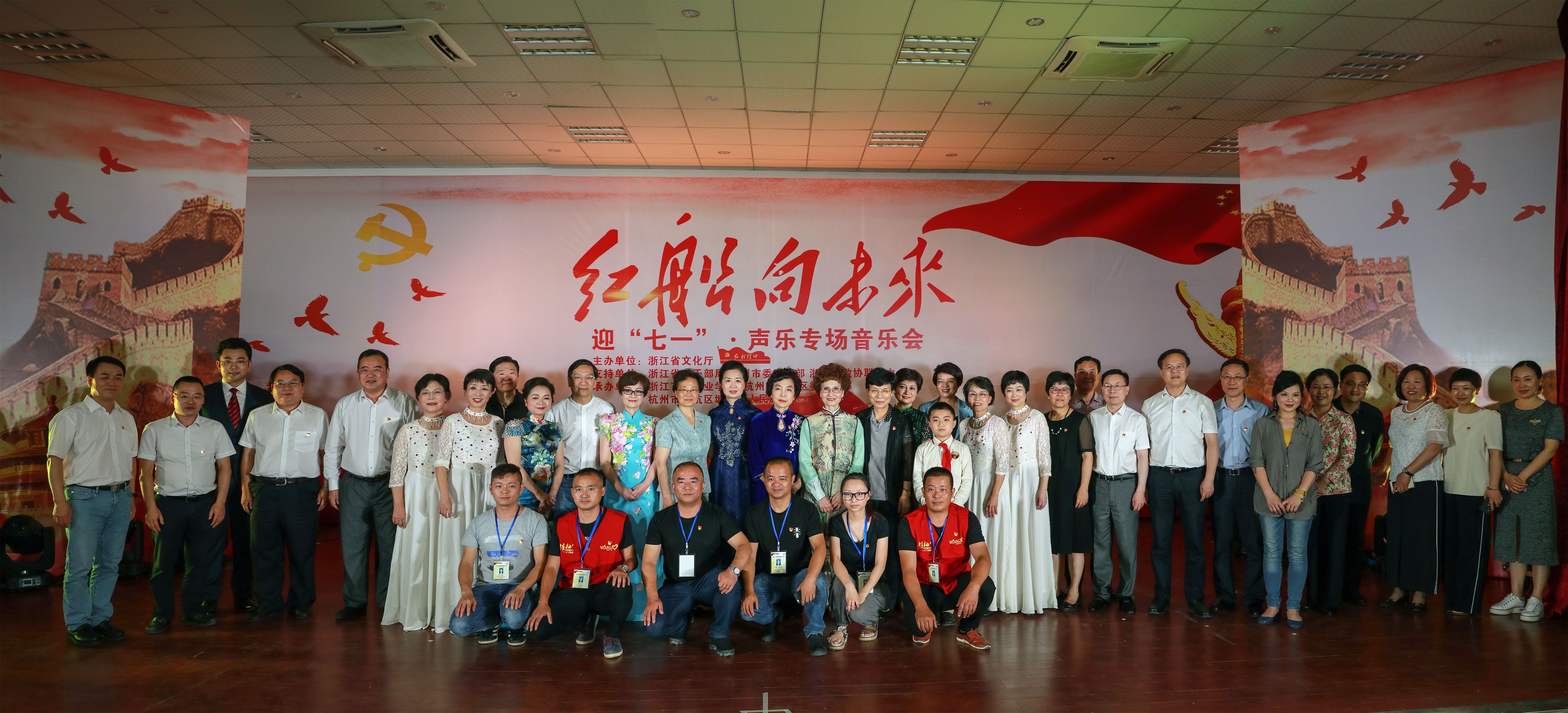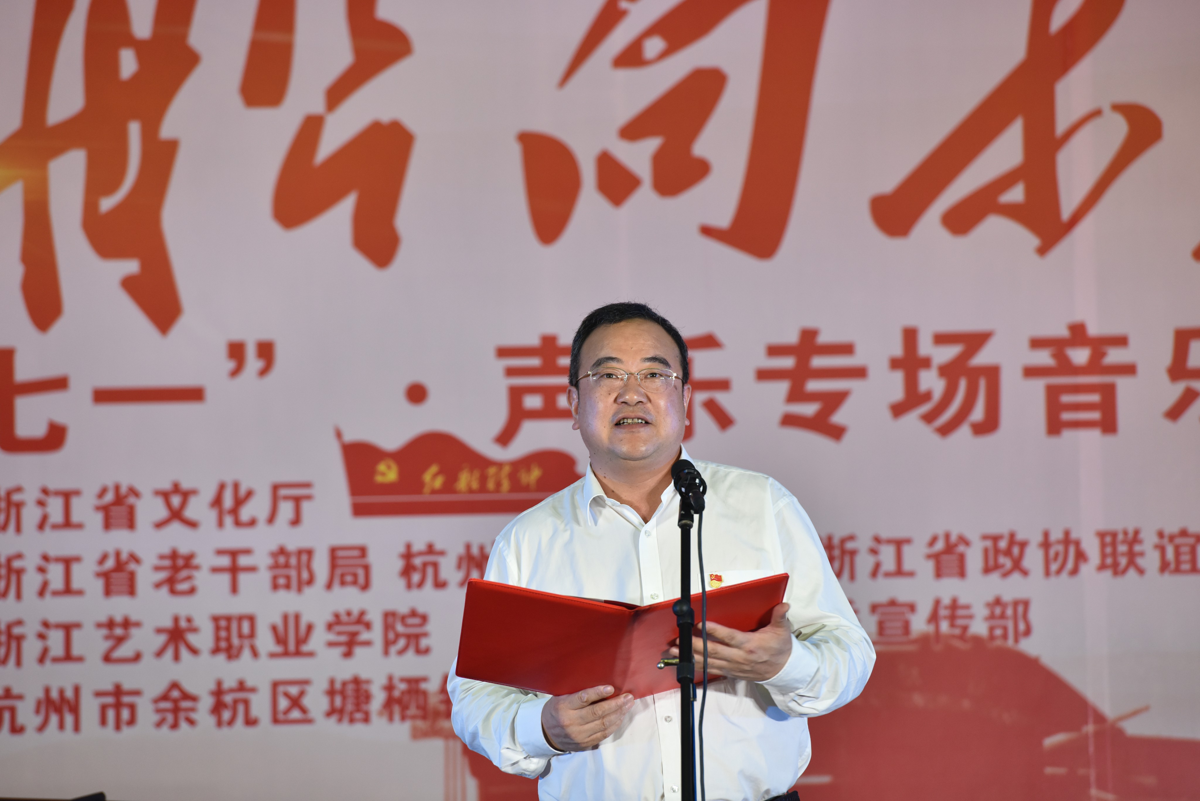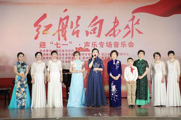 6月23日,为迎接建党97周年,由浙江省文化厅主办,省委老干部局、杭州市委宣传部、省政协联谊中心支持,浙江艺术职业学院、杭州市余杭区委宣传部、塘栖镇人民政府承办的“红船向未来——迎七一声乐专场音乐会”主题党日活动在余杭区塘栖镇塘栖村文化礼堂举行。省人大常委会党组书记、副主任梁黎明,杭州市人大常委会主任于跃敏,省委宣传部常务副部长来颖杰,省委组织部副部长、省委老干部局局长鲍秀英,省文化厅党组书记、厅长褚子育,浙江艺术职业学院党委书记朱海闵、副院长沈恒、音乐系系主任郭义江等出席。来自省直系统有关单位的党员干部、杭州市及余杭区有关领导在现场与村民们一起聆听了这场音乐会。
