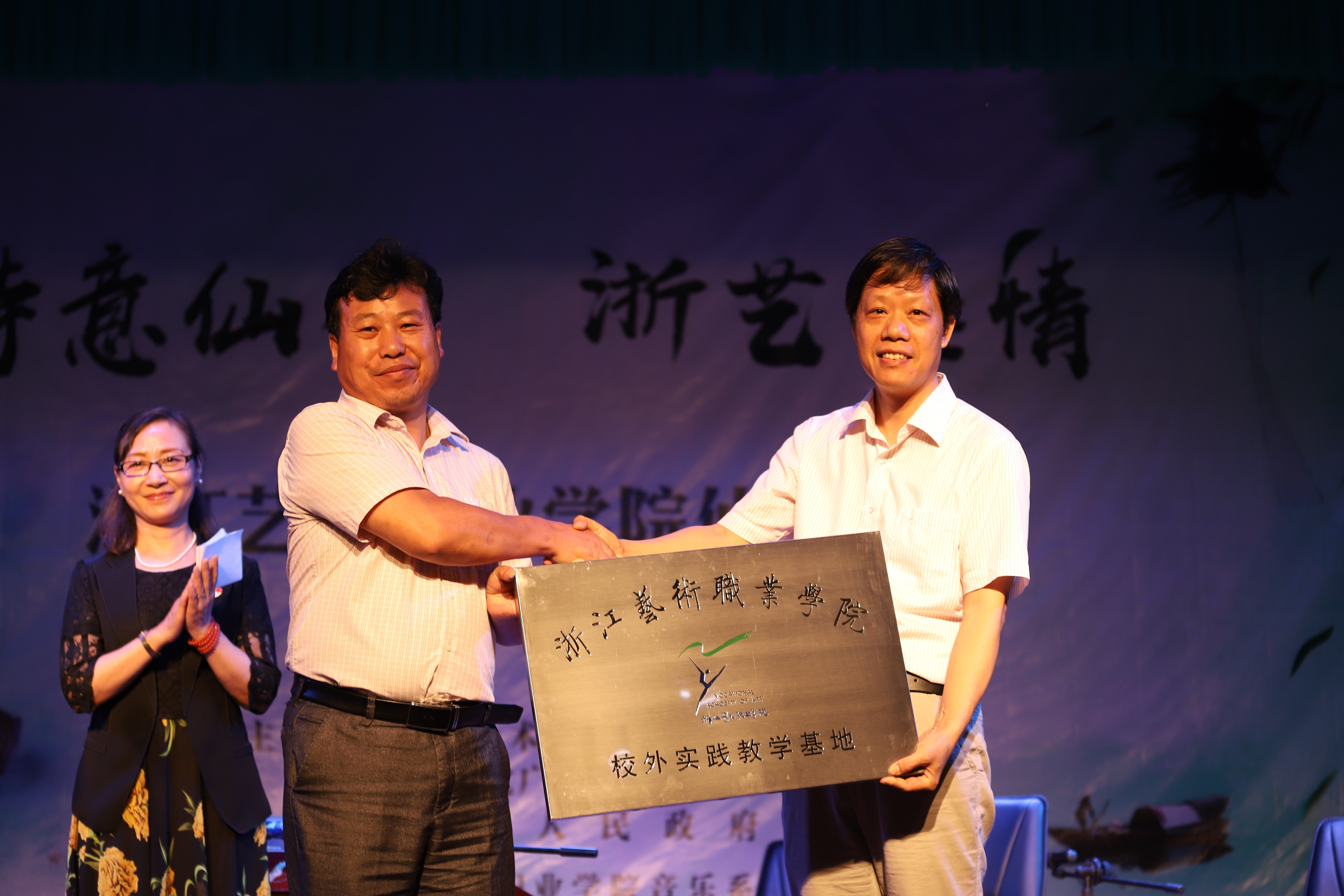 为服务农村文化礼堂,助力乡村振兴战略,浙江艺术职业学院与仙居县文广新局合作,在该县设立教学实践基地,6月29日,在埠头镇大庄村进行了教学实践基地的授牌仪式。此次仙居行,由浙江艺术职业学院师生组成的服务农村文化礼堂队伍为村民们带来了两场“诗意仙居 浙艺传情”精彩演出,受到了当地人民的热烈欢迎和好评。