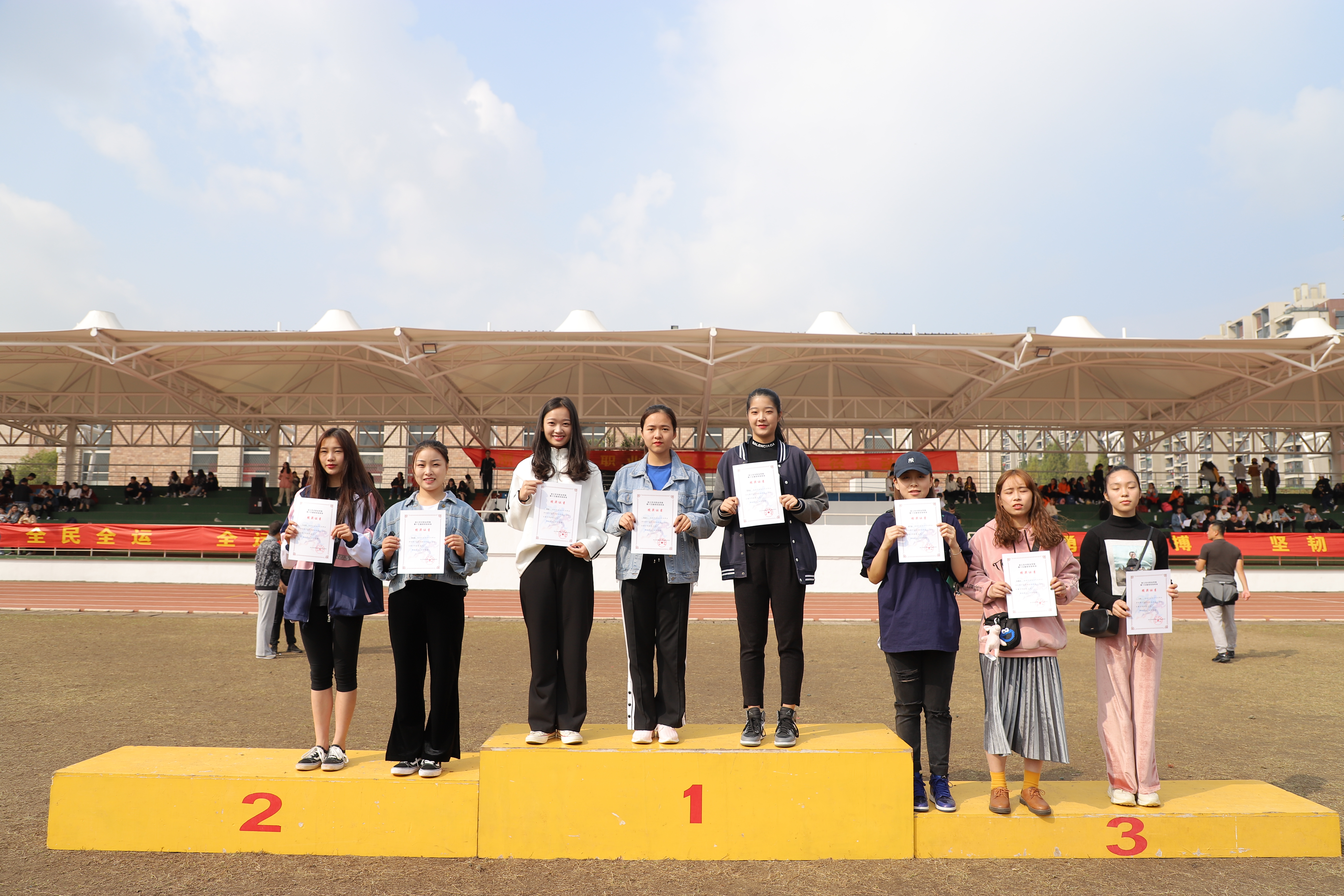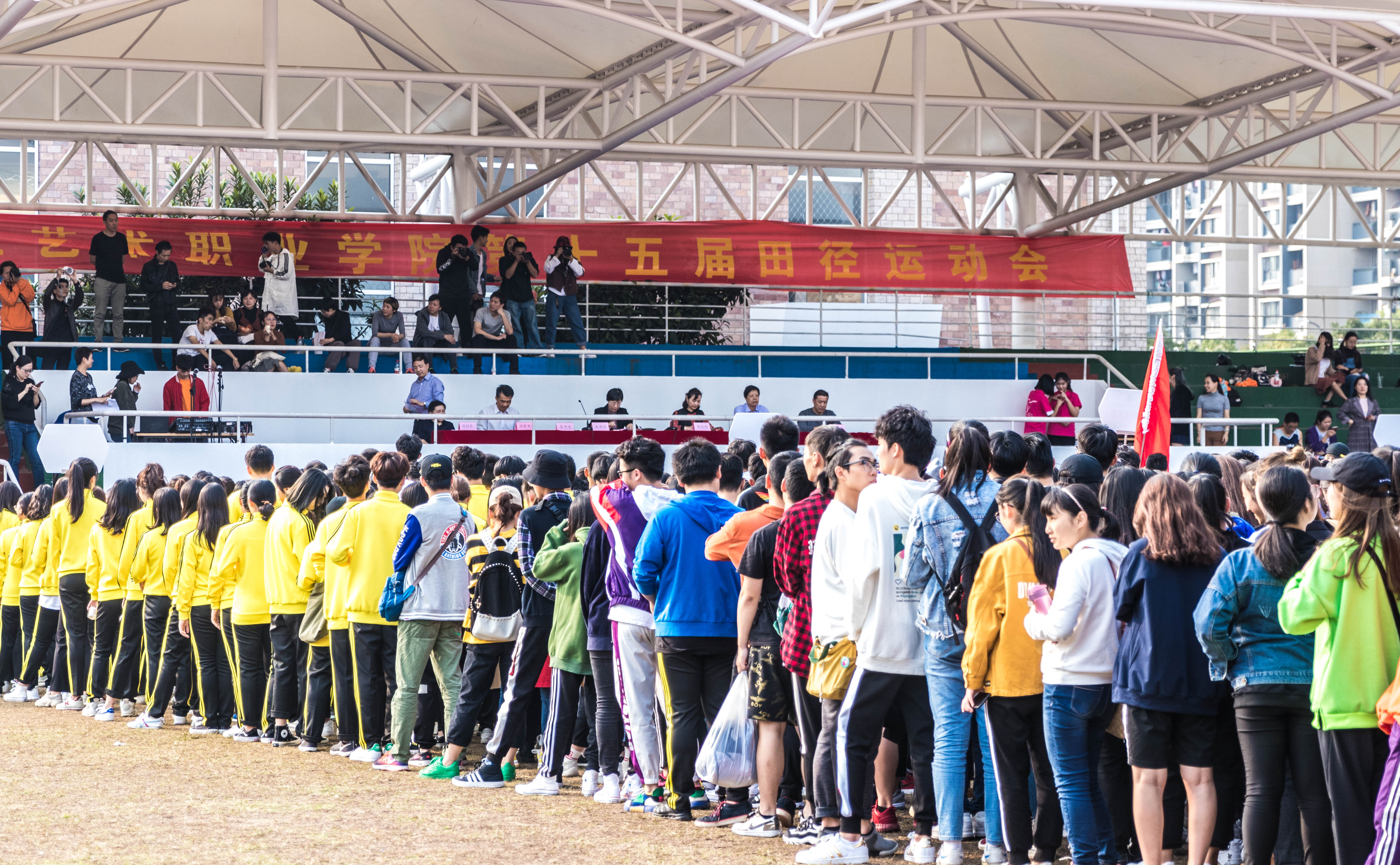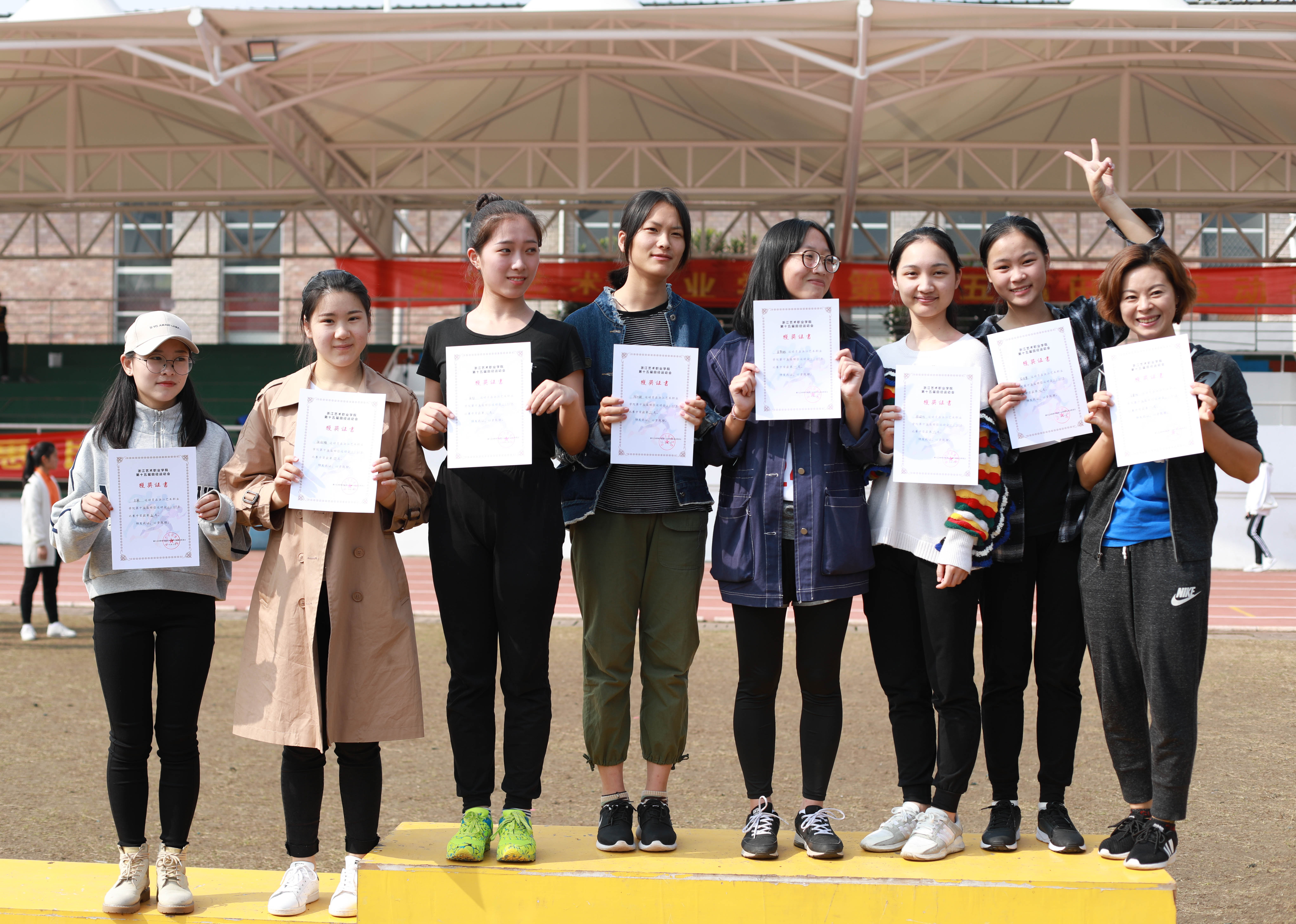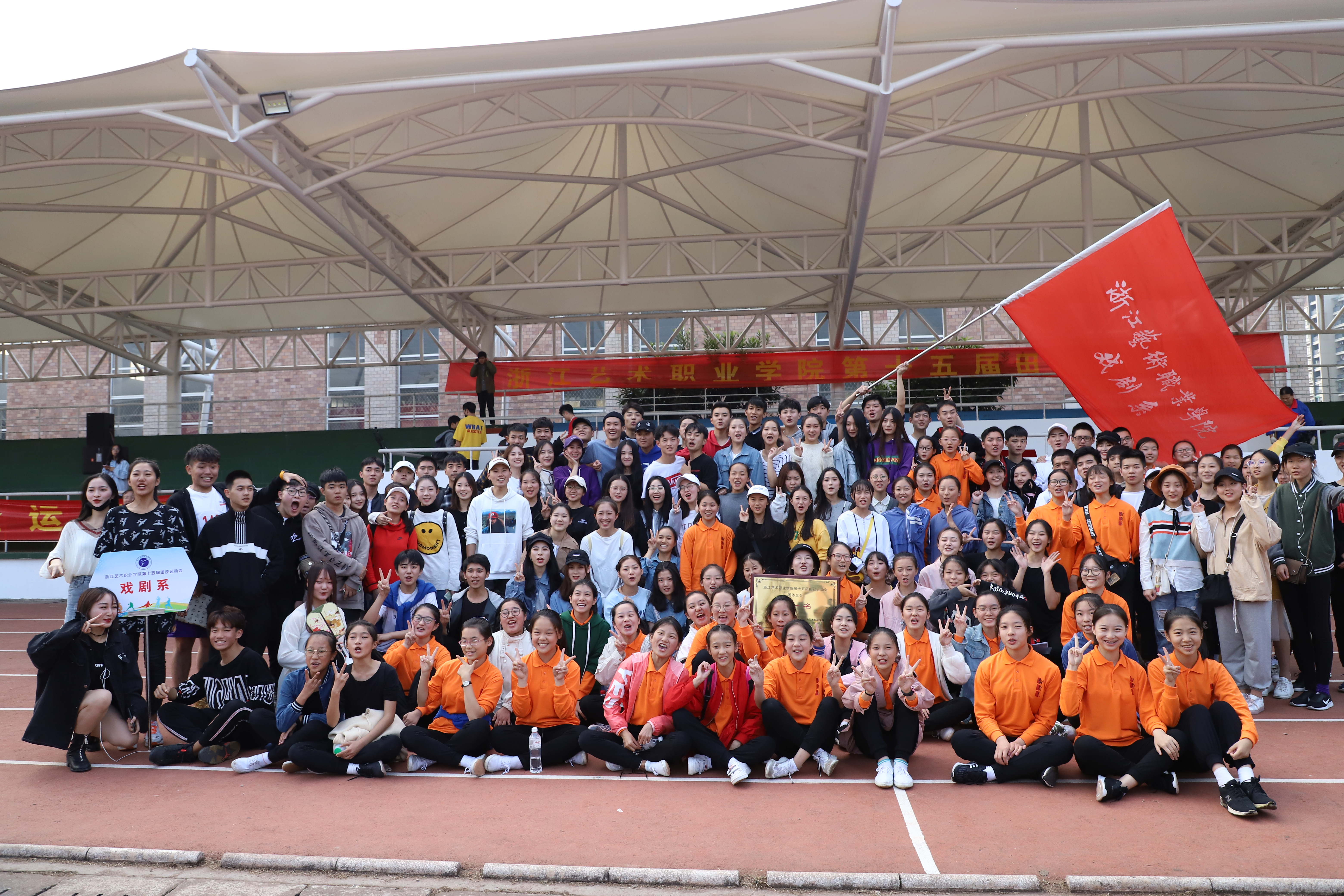 伴随着温暖的阳光,运动会胜利闭幕了。我们见证了运动员的拼搏努力,裁判们的严谨公正,志愿者的辛勤付出。我们被加油呐喊声所感染,被一幕幕同学们互相帮扶的情景所感动。这个秋天,这个下午,浙艺人在绿茵场上留下了属于他们的风采。